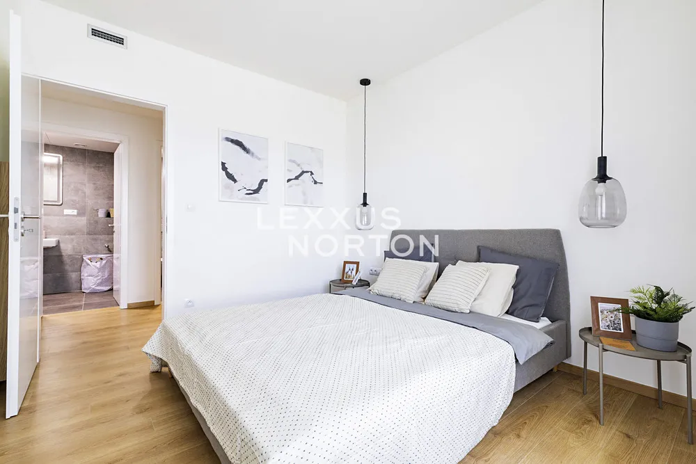 Nové Modřany jsou unikátní projekt, který v sobě spojuje komfort velkoměsta a svobodu přírody. Nadstandardní byt 3+kk o velikosti 77,2 m² vás okouzlí balkónem, který developer zvětšil, aby byt propojil s okolní zelení. Součástí projektu Nové Modřany je venkovní posilovna, kavárna, 3 dětská hřiště s trampolínami a na východní straně vyrůstá park. V projektu také najdete kočárkárnu, stojany na koloběžky a elektrické nabíječky na auta.