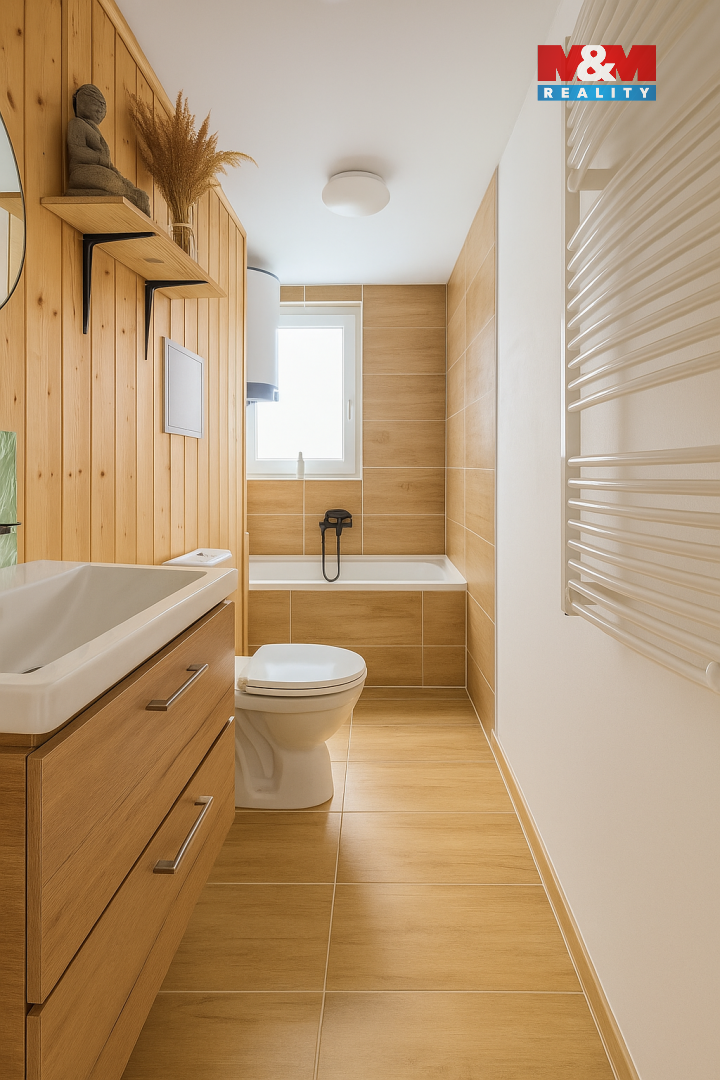 Nabízíme k prodeji družstevní byt po rekonstrukci o dispozici 2+1 a podlahové ploše 48 m², který se nachází v klidné obci Chotiměř. Byt je situován v cihlovém bytovém domě a svým charakterem potěší každého, kdo hledá pohodové bydlení v klidném venkovském prostředí. Dispozice bytu tvoří vstupní chodba, kuchyň s jídelním koutem, obývací pokoj s krbovými kamny, které pohodlně vytopí celý byt, a samostatná ložnice. Koupelna prošla kompletní rekonstrukcí – najdete zde vanu, umyvadlo i toaletu.