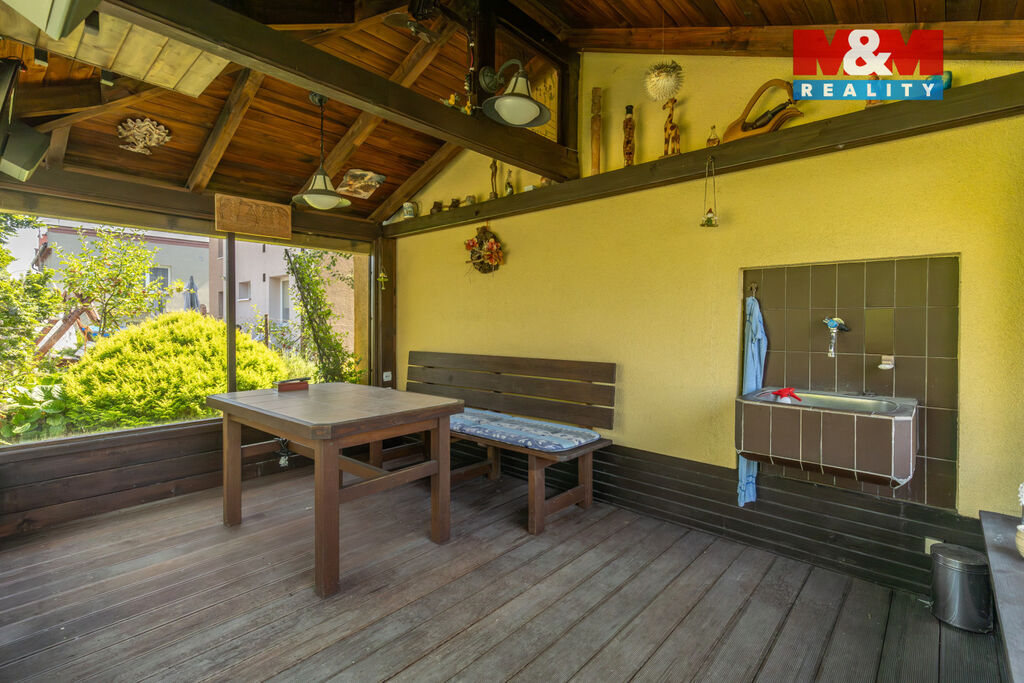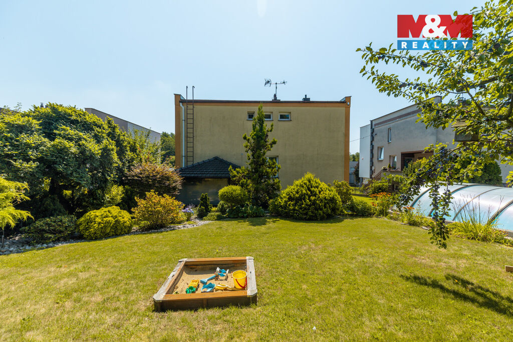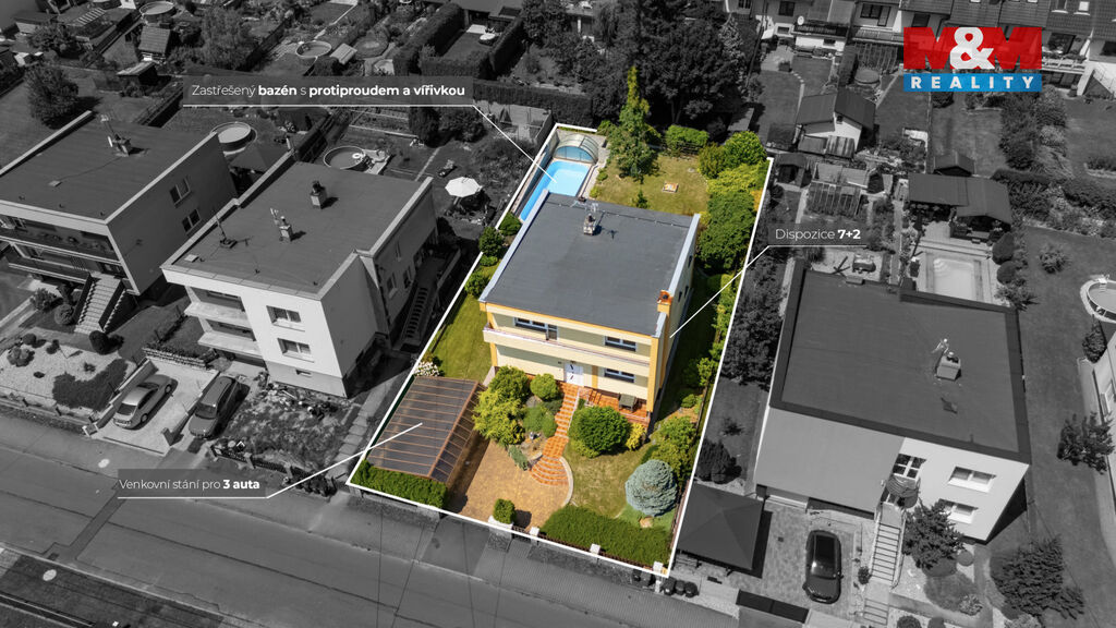 Nabízíme k prodeji podsklepený, zděný rodinný dům 7+1 na atraktivní adrese v klidné části obce Hlučín. Dům lze předělat na dvougenerační, obě podlaží mají sociální zázemí a rozvod vody ke kuchyni. Při vstupu vás vítá prostorná, otevřená, stylová hala s krbem, z které se vchází do obytného přízemí. To disponuje 2 pokoji, prádelnou, WC a místnosti v rekonstruovaném stavu, nutno dodělat. Po schodišti se dostaneme do 1.NP, kterému dominuje slunný obývací pokoj propojený s jídelnou, kuchyň, 2 pokoje, koupelna, WC a komora. Z obývacího pokoje je vstup na balkón s výhledem do okolí. K domu patří pečlivě udržovaná zahrada se zastřešeným bazénem s protiproudem a vířivkou a zasklená terasa s příjemným posezením. Vjezd do domu je bránou na dálkové ovládání. Parkování zajištěno přístřeškem pro 3 auta a prostor na nádvoří. Dům je napojen na zabezpečovací systém. Topení plynovým kotlem, veřejný vodovod je zaveden, dům je ale napojen na studnu na zahradě, veřejná kanalizace je. Více info v RK.
