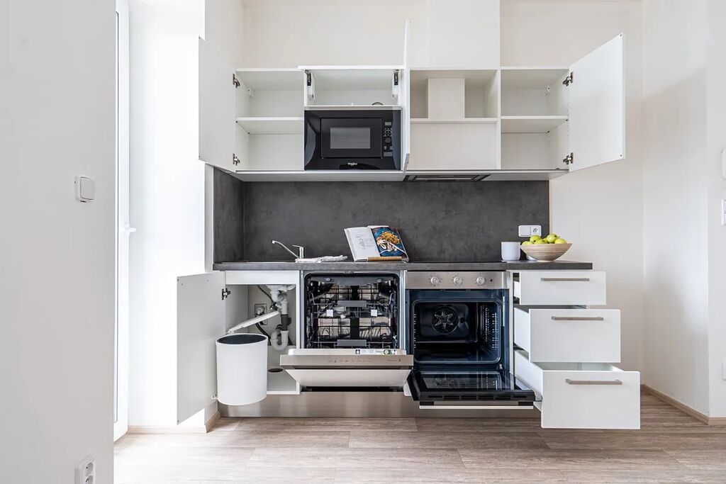 Nadstandardní vybavení: Každý byt je vybaven kuchyňskou linkou se spotřebiči zn. Whirpool bez lednice, vestavěnou skříní v předsíni s místem pro připojení pračky. Podlahy vinyl, sanita Hans Grohe, AlkaPlast, Ideal. Podlahové vytápění. Žaluzie a sítě na oknech.