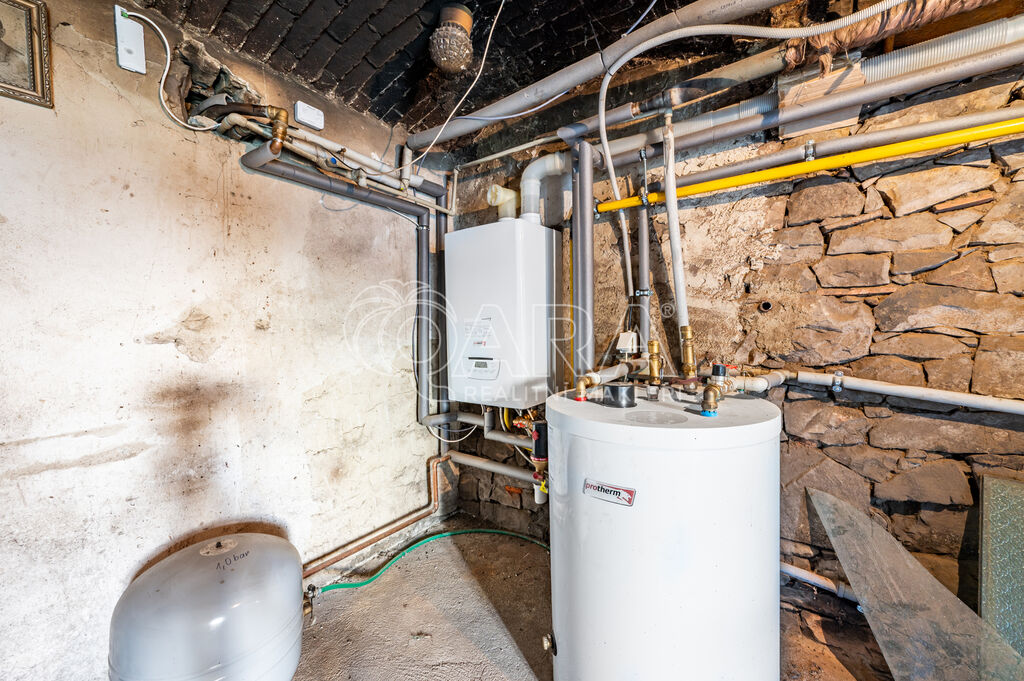 Vytápění ve spodní části domu zajišťuje nový úsporný plynový kondenzační kotel se zásobníkem, což znamená nízké provozní náklady.