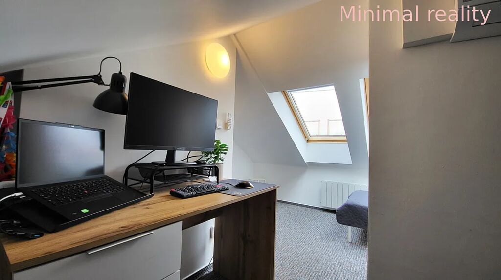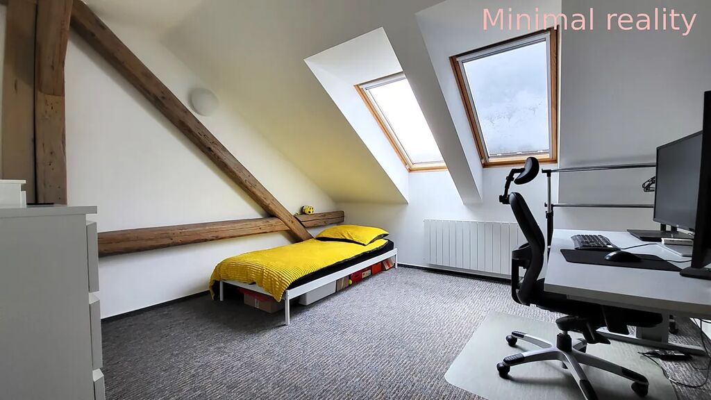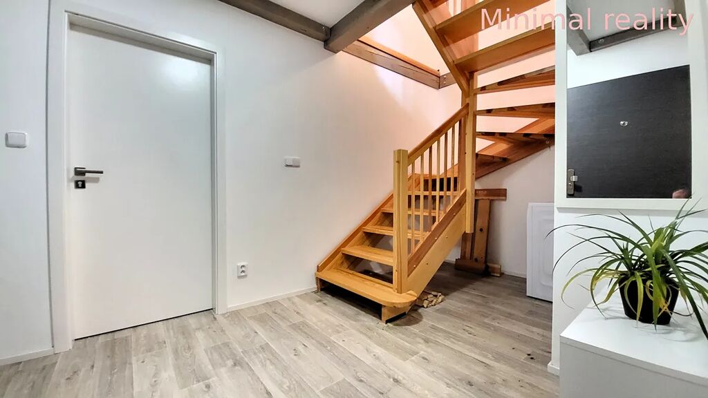 Byt je dispozičně dobře řešený. Z prostorné chodby jsou vstupy do kuchyně, pokoje, koupelny, samostatné toalety, po dřevěném schodišti je vstup do druhého pokoje.