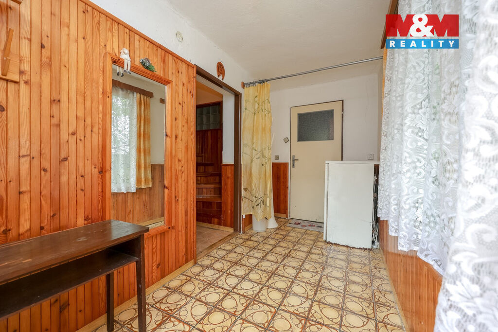 Nabízíme prodej chalupy o dispozici 5+1 v obci Ryžoviště, okres Bruntál. Dům je v původním udržovaném stavu. V přízemí domu je vstupní chodba s komorou, kuchyně, obývací pokoj, ložnice, toaleta s koupelnou, kotelna, špajz, vstup do sklepa a zadní východ do zahrady se zasklenou verandou. V patře potom dva další pokoje a užitná půda. Původní kotel na tuhá paliva byl vyměněn za plynový kotel. K dispozici jsou i skladovací prostory v suterénu domu. V zahradě stojí zděná hospodářská budova a další dřevěné kůlny. Z vrchní zahrady možný výjezd dřevěnou branou na polní cestu a louky. Jedná se o velmi klidnou lokalitu s krásnými výhledy na okolí a s veškerou občanskou vybaveností přímo v obci. Bezplatná pomoc s vyřízením financování nemovitosti je u nás samozřejmostí. PROHLÍDKOVÝ DEN VE STŘEDU 15.10. ZAVOLEJTE MAKLÉŘI A DOMLUVTE SI VČAS SVŮJ TERMÍN PROHLÍDKY.