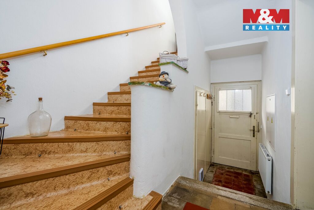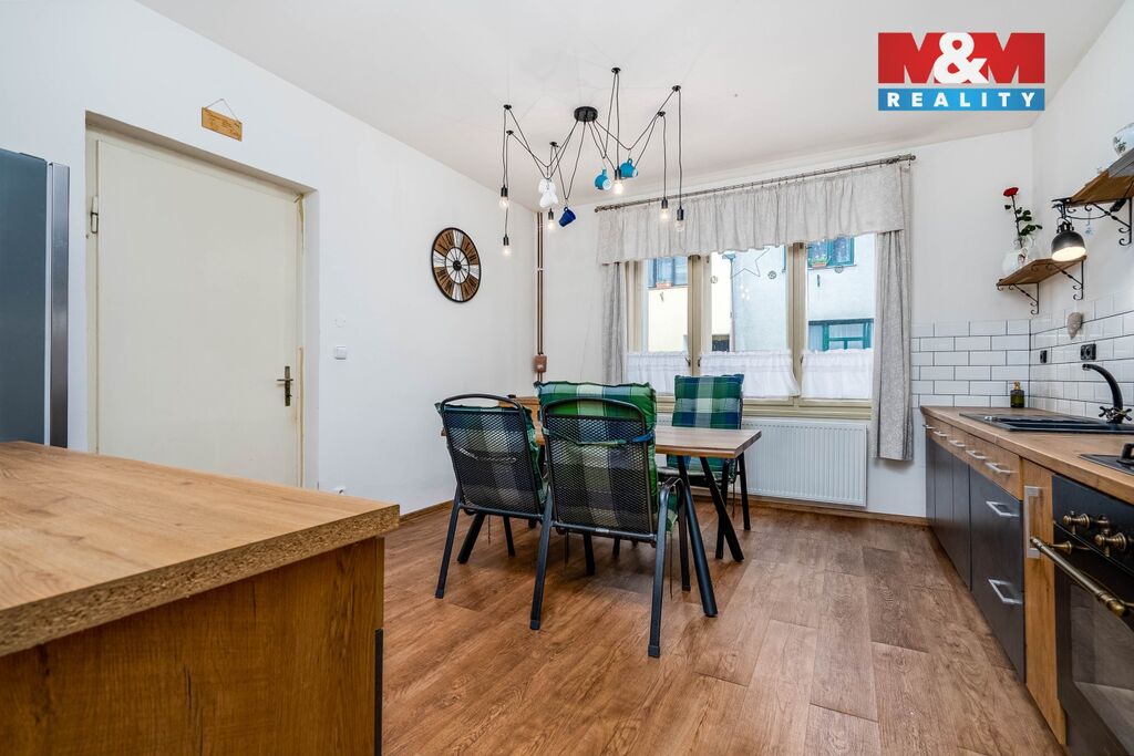 Přízemí tvoří velká kuchyně, která přechází do slunného obývacího pokoje s oknem do zahrady. Koupelna po moderní rekonstrukci zaujme prostorným sprchovým koutem s pohodlnou nikou pro sezení, samostatné WC je laděno do stejného stylu.