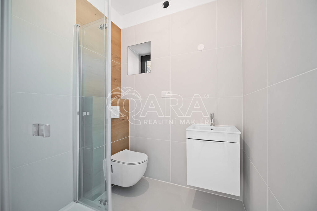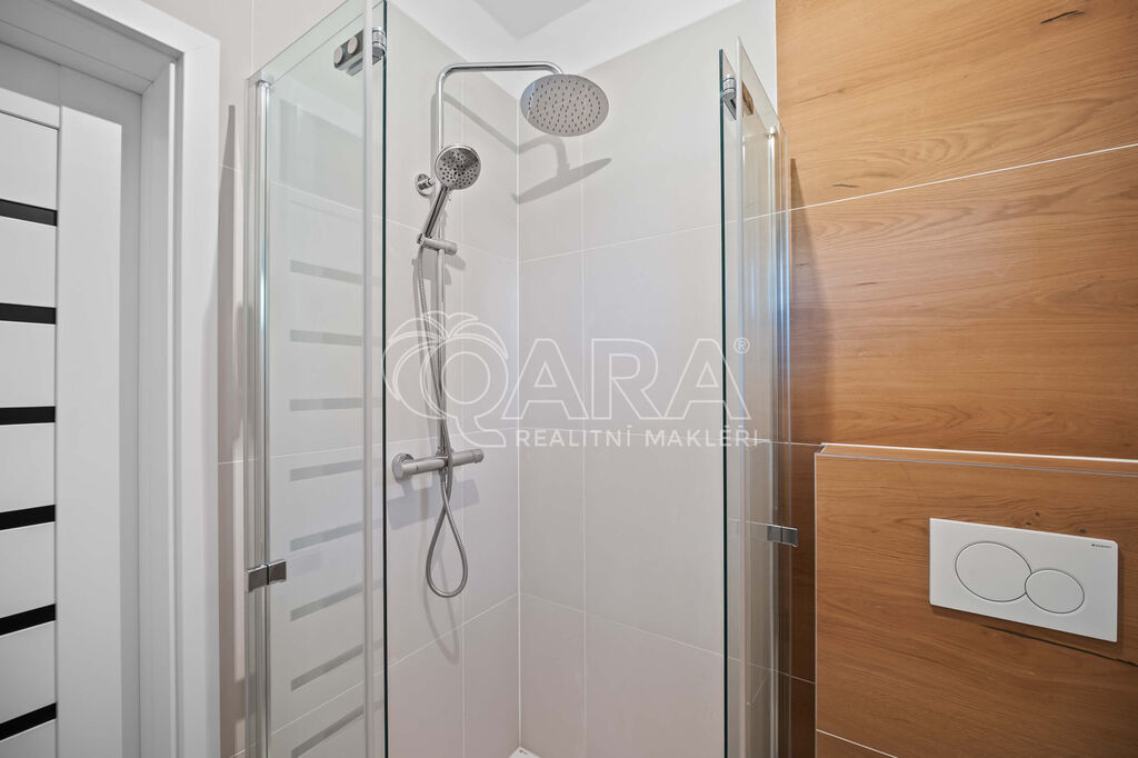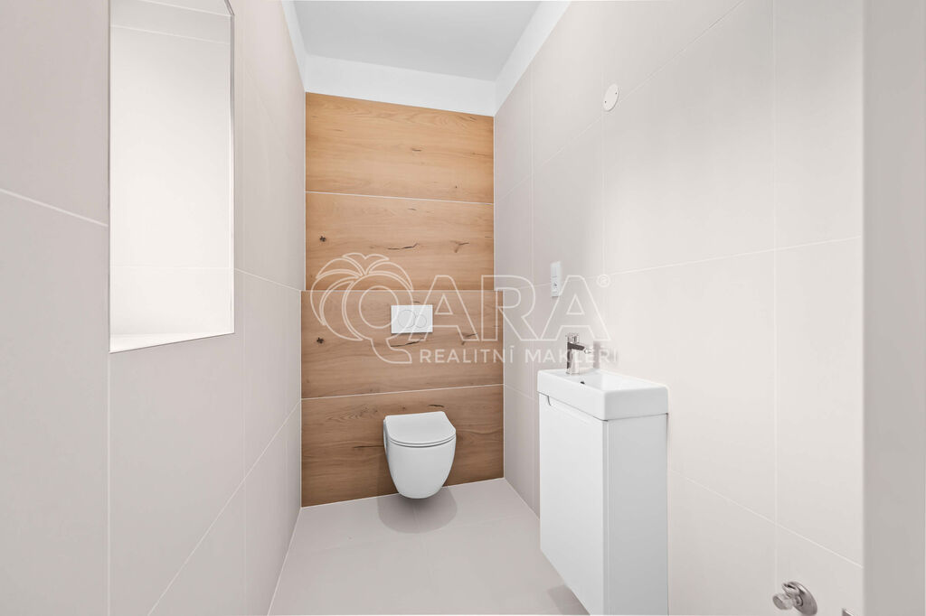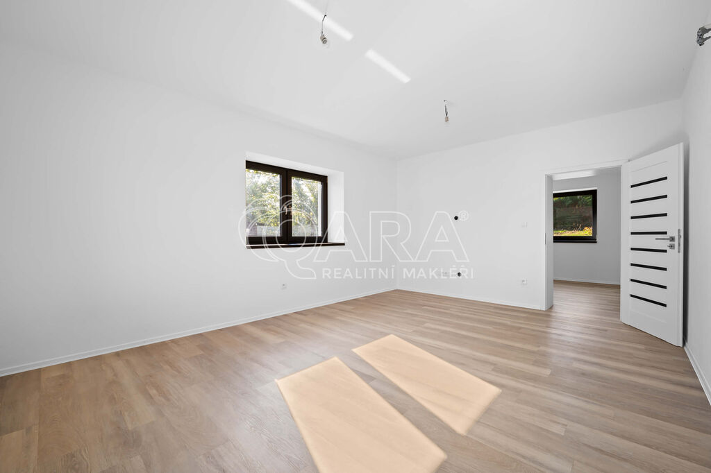 V přízemí se nachází prostorný obývací pokoj, kuchyně s přípravou pro novou linku dle vašich představ, ložnice s vlastní šatnou a koupelnou se sprchovým koutem, dále vstupní hala a samostatná toaleta.
