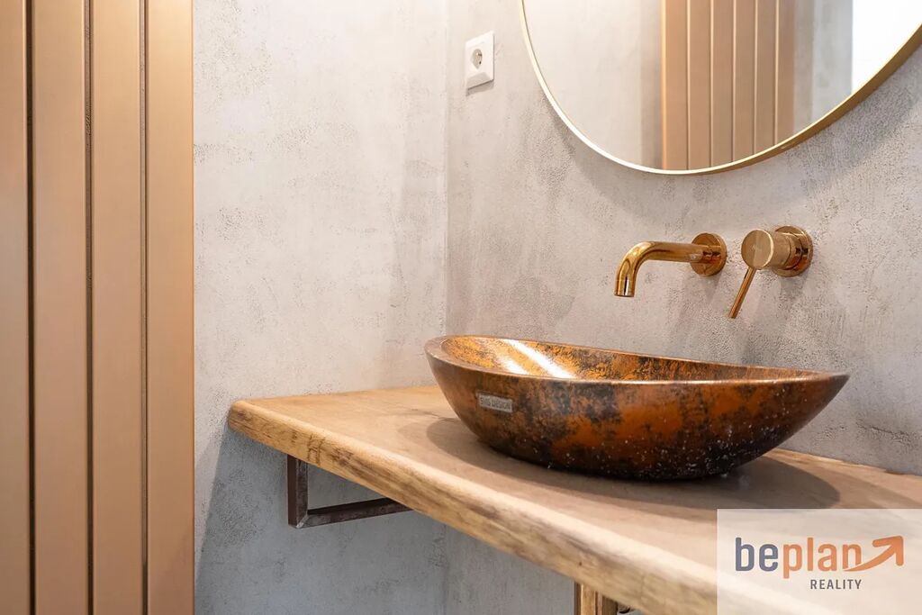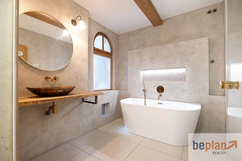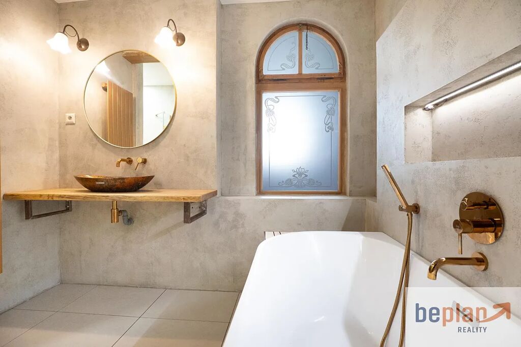 Druhé a třetí podlaží nabízí prostorný byt 4+1 po modernizaci, který kombinuje klasické prvky dřevěné podlahy a interiérové dřevěné dveře s moderními detaily v koupelnách a kuchyni. Plynový kotel zajišťuje komfort v celém domě, alternativně lze topit i kamny na dřevo s rozvody tepla do dalších místností skrz průduchy.