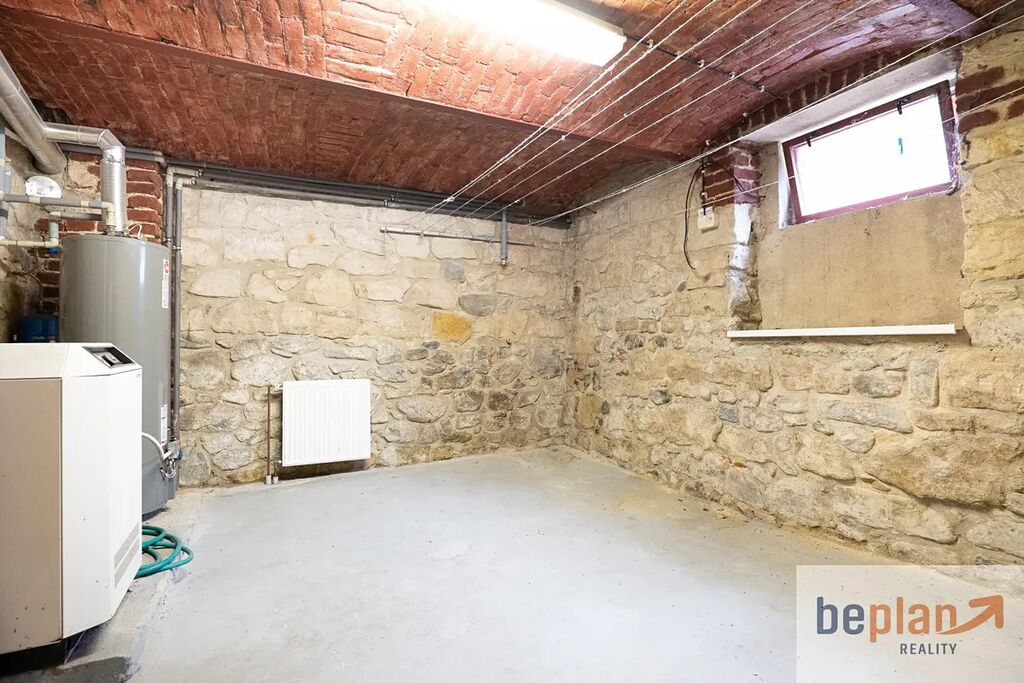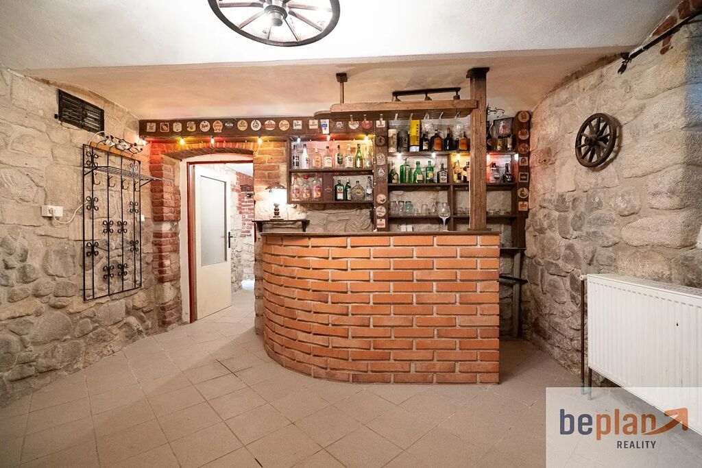 Ve sklepě domu se nachází technické zázemí s plynovým kotlem a zásobníkem na ohřev vody, praktická dílna a také vlastní bar s krbem místo, kde si dokážete představit večery plné pohody se svou rodinou.
