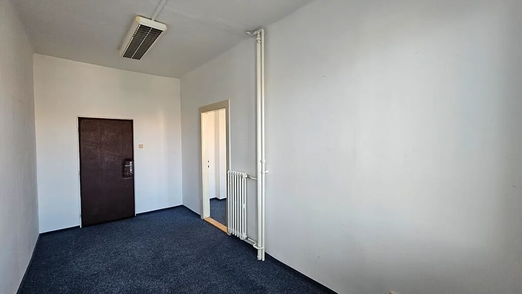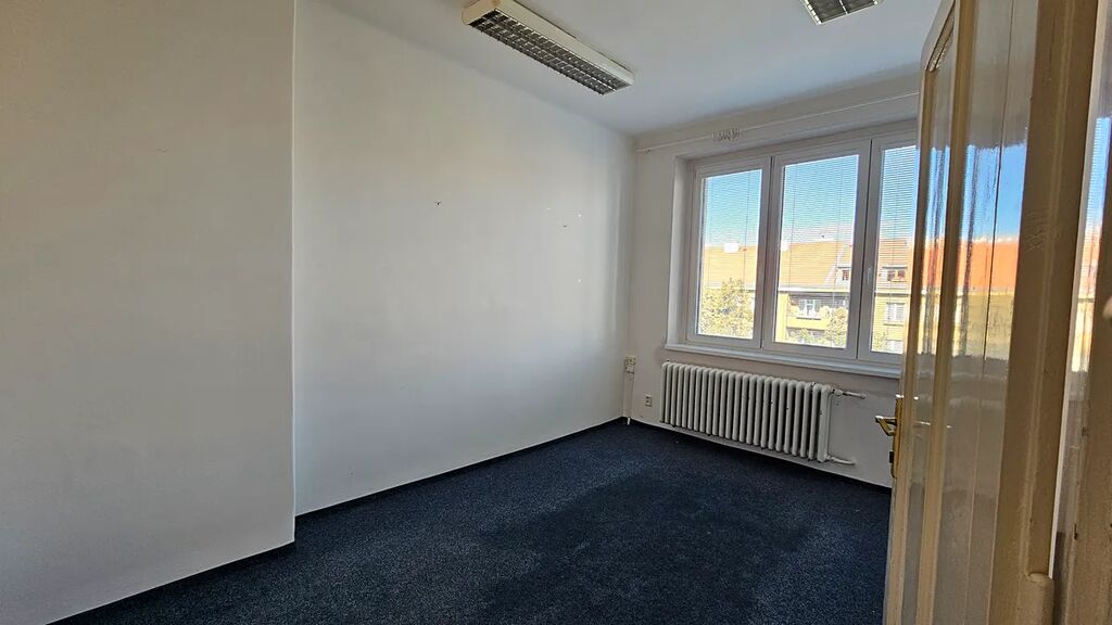 Dvě kanceláře o celkové ploše 28m2 ve 3. patře kancelářské budovy s recepcí a výtahem. Okna do klidného vnitrobloku (S). Na patře je k dispozici kuchyňka, sociální zařízení.