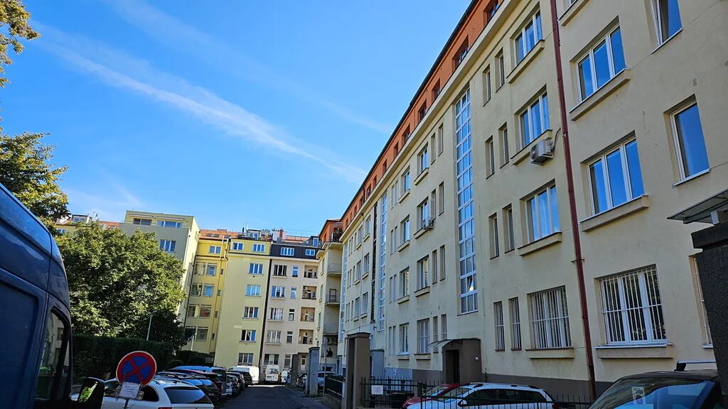 Služby recepce, topení, elektřina, voda, odpad, úklid společných prostor, provoz výtahu jsou účtované paušálem (4.400 Kč/měs.).