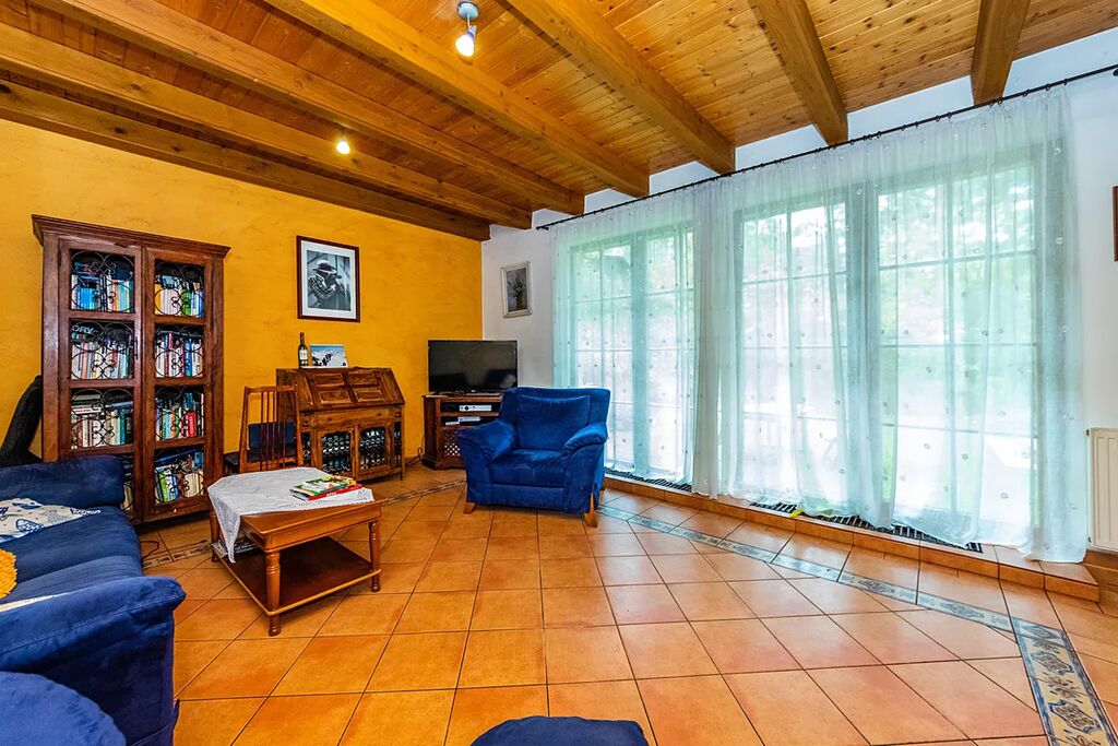 Udržovaný rodinný dům situovaný v krásné přírodě v klidné části obce Kosoř. Dům sestává v přízemí se vstupní předsíně obývacího pokoje s jídelnou a kuchyní, samostatného pokoje s krbem, koupelny s vanou a WC, v patře se nachází 3 samostatné pokoje a koupelna se sprchovým koutem a WC. Na pozemku je dále zahradní domek o výměře 40 m2 a 2 zastřešená parkovací stání. Dobrá dopravní dostupnost ke stanici metra B Smíchovské nádraží či Anděl.