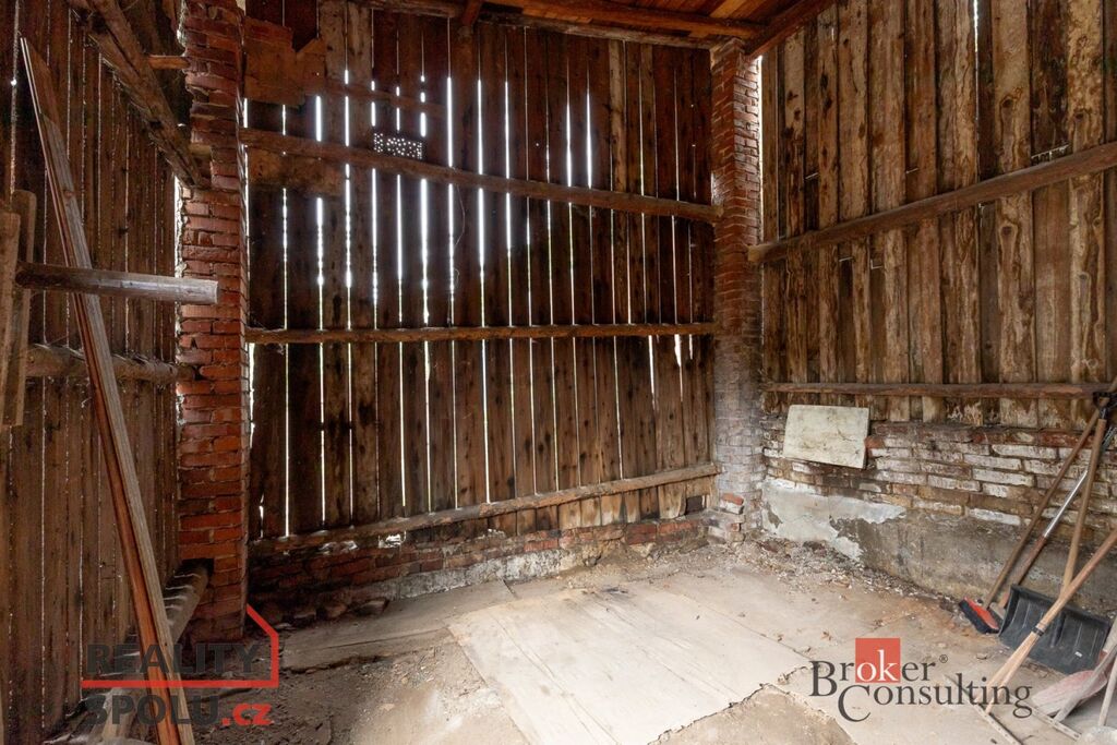 Před domem přes cestu je zahrádka s hospodářskou budovou o 2 místnostech a dřevěnou stodolou.