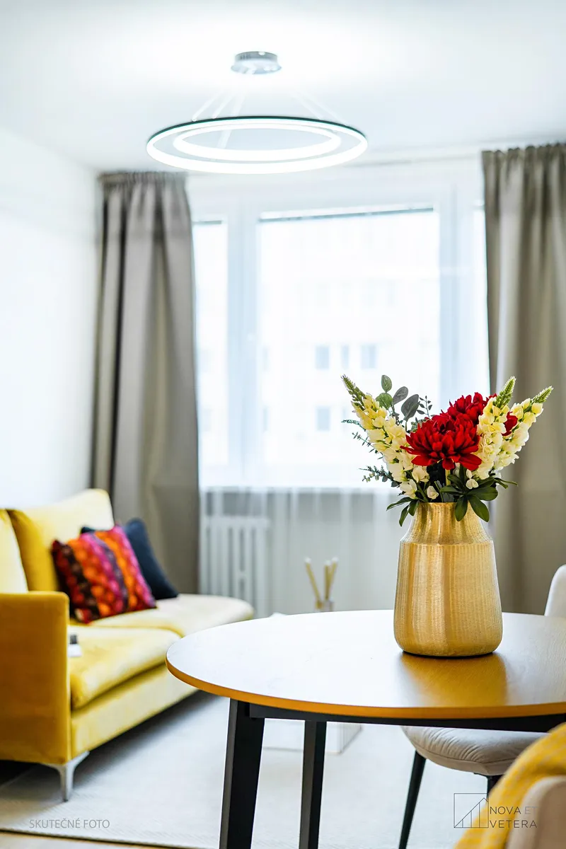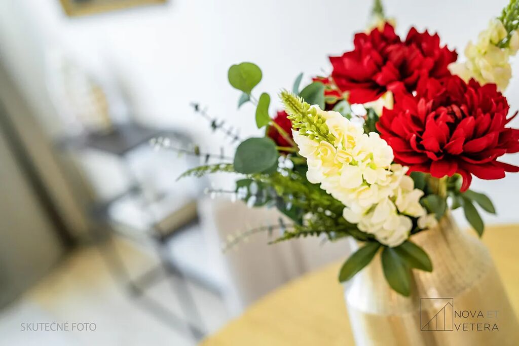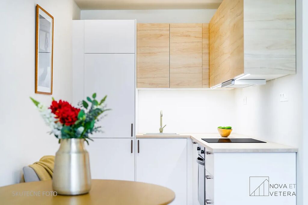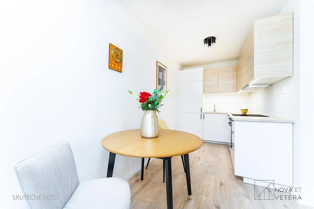Byt právě prochází kompletní rekonstrukcí, která zahrnuje nové rozvody elektřiny, vody a odpadů, moderní podlahové krytiny, obklady, sanitu i interiérové dveře. Součástí vybavení je moderní kuchyňská linka na míru se spotřebiči značky Gorenje s pětiletou zárukou.
