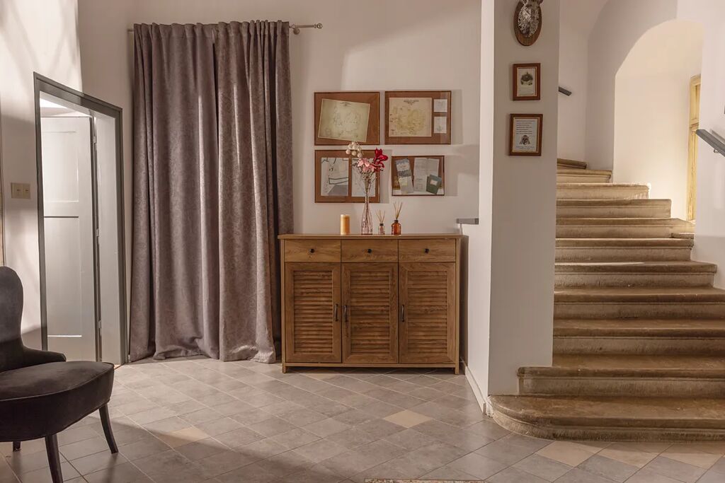 Do domu se vchází prostornou vstupní halou ze které jsou přístupné 2 ložnice, technická místnost s elektrokotlem a bojlerem. Dále pak tu jsou dveře do sklepa, který svou dispozicí a příjemnou teplotou přímo vybízí k ukládání láhví vína nebo potravin. Majitel původně uvažoval o jeho využití i jako malý vinný sklípek. Bohužel k této realizaci již nedošlo.