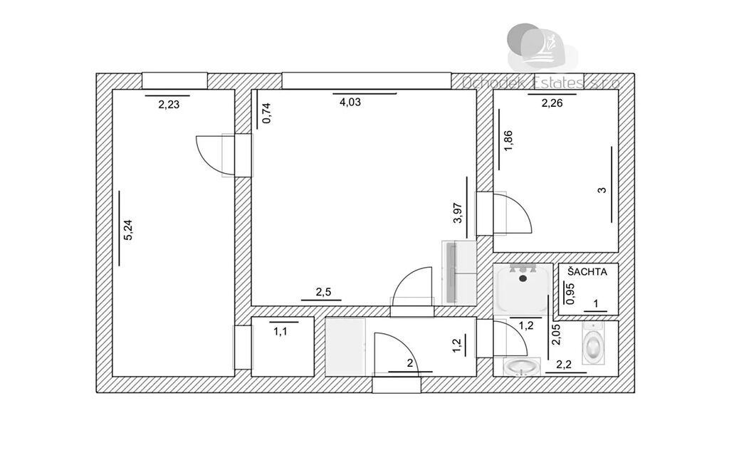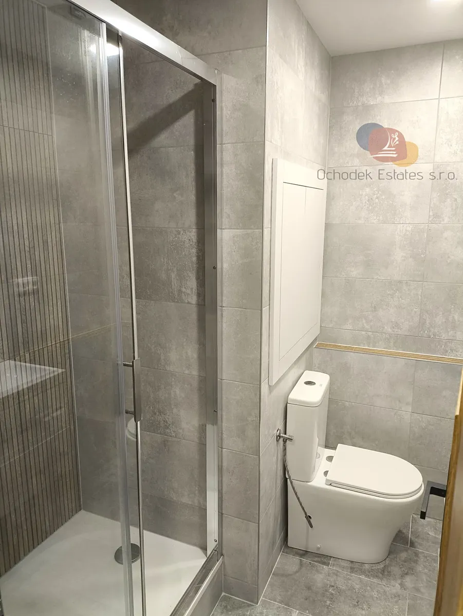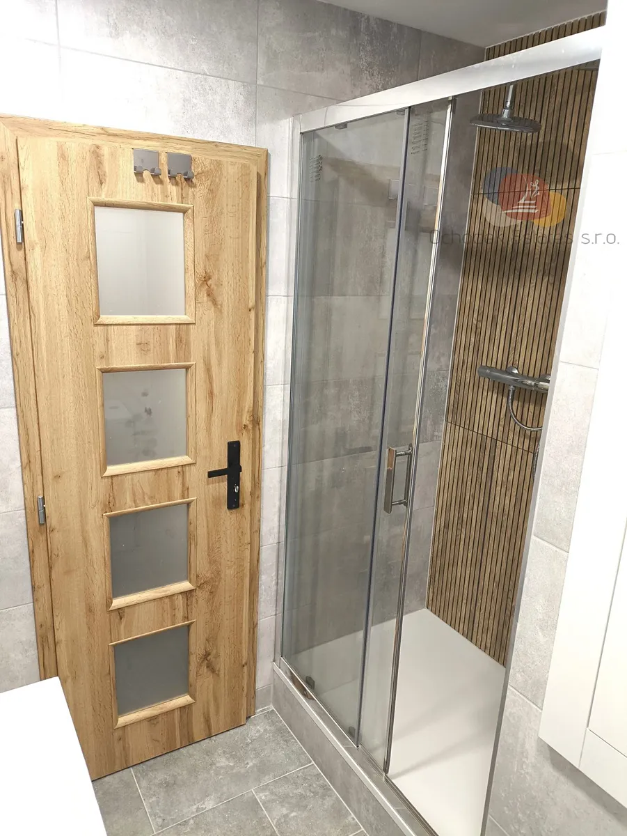 Ale vezměme to popořadě. Po vstupu do bytu se octnete v 3,6m2 velké chodbě, jejíž součástí je nalevo umístěná vestavěná skříň s atypickou hloubkou 97cm, kam dokážete uložit opravdu hooodně věcí. Napravo od vstupních dveří je se svými 3,4m2 koupelna s prostorným sprchovým koutem, toaletou a umyvadlem.