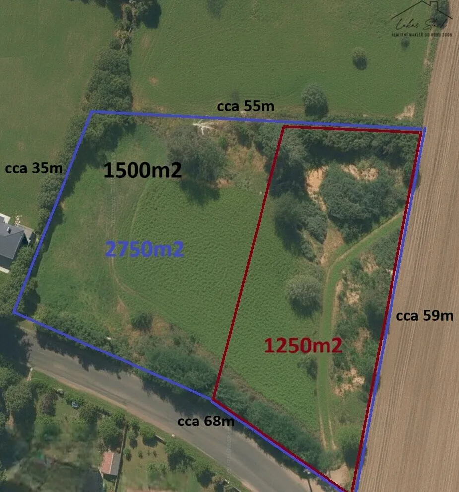 • 2 750 m² – rozšířený celek vhodný pro usedlost nebo rozlehlejší projekt