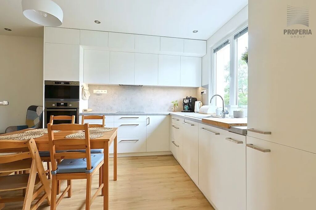 Tato elegantní a promyšleně upravená bytová jednotka prošla kompletní rekonstrukcí v roce 2020, během níž byla změněna její dispozice z původního 2+1 na prostorné a praktické 3+kk. Výsledkem je vzdušný interiér s moderní kuchyní na míru, prostorným obývacím pokojem, příjemnou ložnicí s balkonem a dětským pokojem/pracovnou, stylovou koupelnou a především dostatkem úložného prostoru díky vestavěným skříním.