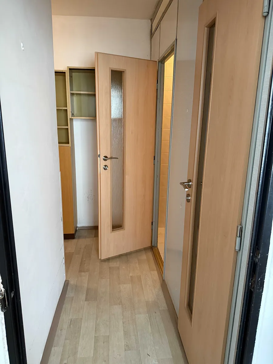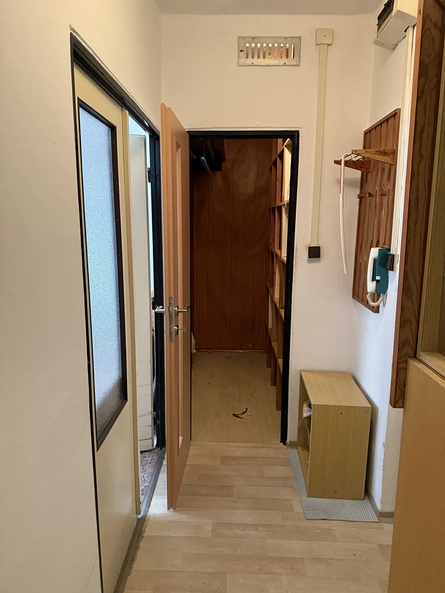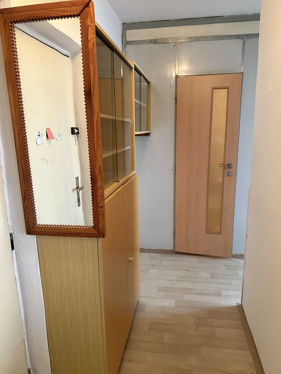Nabízím k prodeji byt 1+1 v družstevním vlastnictví, který se nachází ve 4. patře panelového domu s možností upravit byt na 2+kk. Byt je o výměře 40 m2 a je ve standartním stavu s umakartovým jádrem. Ze vstupních dveří se vejde do chodby, kde před vámi je vstup do hlavního obývacího pokoje o výměře 20 m2. Napravo od vás je malá komora. Nalevo se jde do samostatné koupelny a samostatné WC. Za koupelnou se vejde do samostatné kuchyně. Menšími stavebními úpravami by se dalo tuto současnou kuchyň probourat do obývacího pokoje a udělat z tohoto bytu dispozici na 2+kk, kde by se z nynější kuchyně udělala samostatná ložnice a obývací pokoj by byl s kuchyňským koutem. V suterénu domu náleží k bytu poměrně velký sklep.