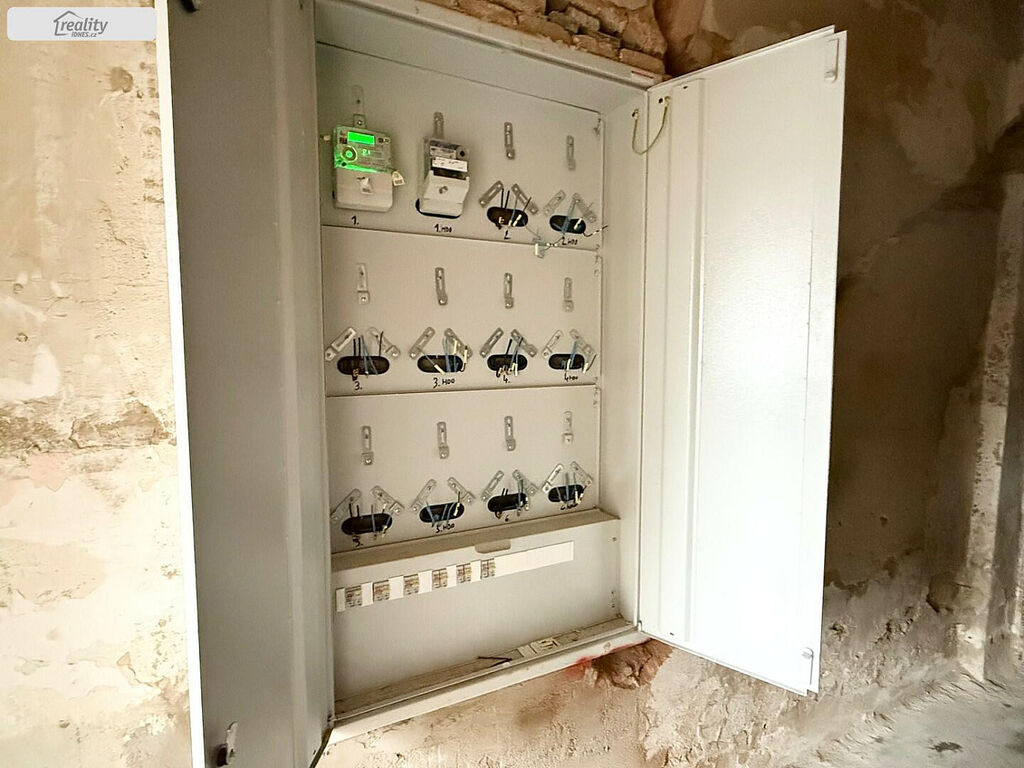 Zatím je hotová nová střecha s krovy (krytina plech), stropy, podlahy, trámy, rozvod elektřiny, vody, nové okna. Součástí je pasport bytového domu.