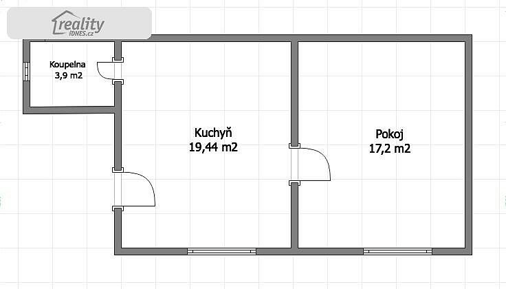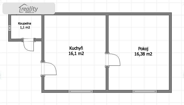 1. NP 1+1 o velikosti 35,56 m² - koupelna se nachází v chodbě