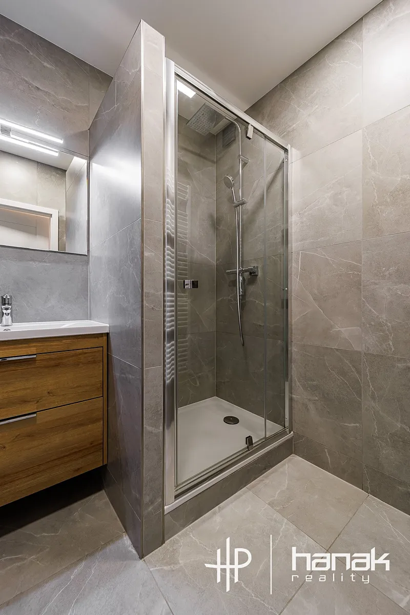 Jednotka prošla kompletní rekonstrukcí a její interiér je moderně laděn v duchu minimalismu.