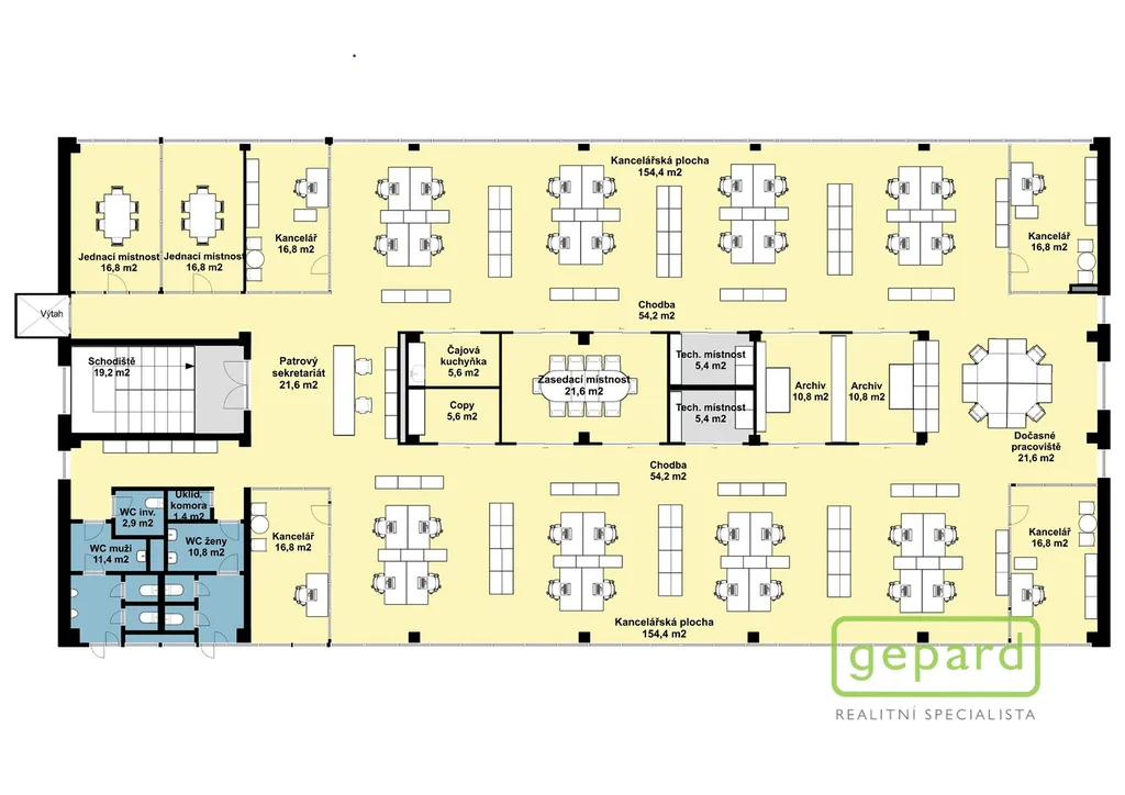 V případě zájmu je možné pronajmout jiné části tohoto patra: 32 m2 (část plochy B), 67,5 m2 (část plochy B), 213 m2 (plocha A) a 131 m2 (plocha C) nebo celé patro dohromady.