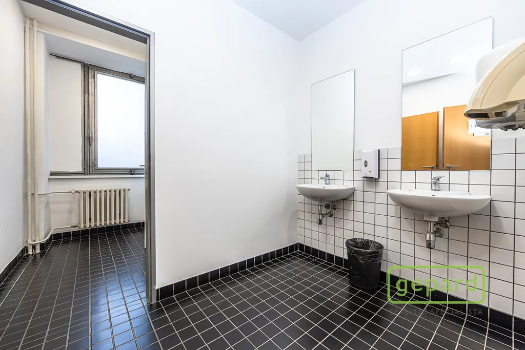 Nabízený prostor o rozloze 97,50 m2 zaujímá část 2. nadzemního podlaží jedné z hlavních budov komplexu. Dispozice je uvedena v přiloženém půdorysu (plocha B). Vybavení je znázorněno na fotografiích. Nájemce může využívat společné prostory: zasedací místnost (23,20 m2), kuchyňku (5,70 m2), toalety (34,90 m2). Poplatek za využívání společných prostor činí 6.408,- Kč. Dále je možné pronajmout sklady (2x4,3 m2 a 1x5,70 m2) za stejnou cenu na m2 jako kanceláře a parkovací stání za poplatek 2.500,- Kč měsíčně za osobní vozidlo. Recepce je v provozu 24 hodin. V komplexu je možné využít konferenční sál (kapacita až 150 míst) a služby restaurace na snídaně a obědy (kapacita až 114 míst) a také služby hotelu.