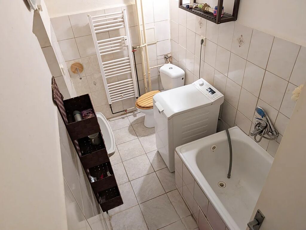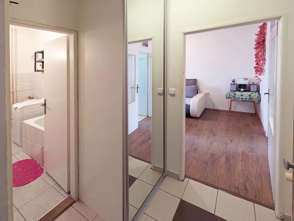 Byt má velmi dobrou dispozici, do kuchyně lze umístit menší jídelní stůl a výhodou je i prostorná koupelna.