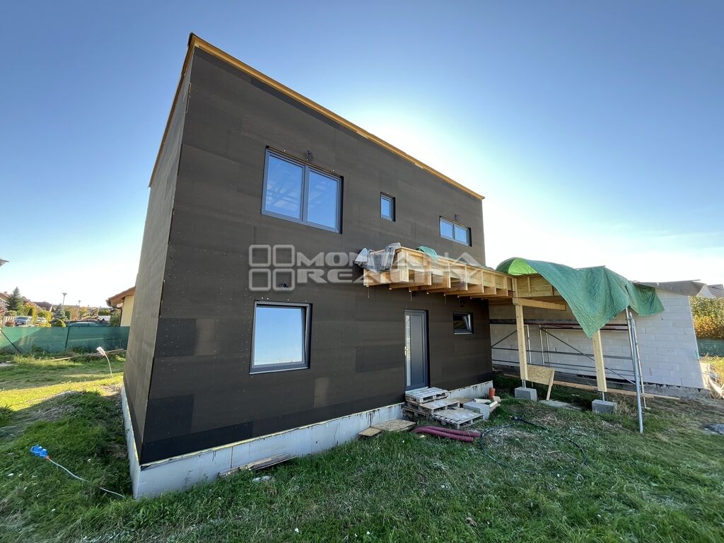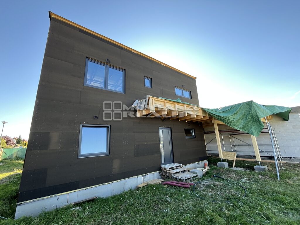 Nabízíme k prodeji novostavbu rodinného domu ve Velkém Týnci u Olomouce. Dům je velmi velkoryse řešen jako 5+kk s technickou místností navazující na dům. Parkování pod přístřeškem před domem a dalším místem na parkování pro dvě auta. Přízemí je dispozičně řešené se zádveřím a vstupní chodbou, koupelnou s WC, pokojem, dále pak prostorný obývací pokoj s kuchyní a masivním schodištěm do patra. V prvním patře 3 samostatné pokoje, koupelna s toaletou. Obývací část spojená s kuchyní se vstupem přes prosklený portál na terasu a pozemek. V kuchyňské části se počítá i s praktickou komorou. V patře koupelna s možností umístění vany a sprchového koutu. Podlahové topení a ohřev vody je řešen tepelným čerpadlem vzduch voda. Novostavba domu je řešená jako difuzně otevřená dřevostavba s provětrávanou fasádou designovými panely James Hardie. Okna jsou plastová šesti komorová s trojskly včetně vstupních dveří. Novostavba má nachystanou přípravu na venkovní žaluzie a klimatizaci, v technické místnosti je možnost instalace toalety. Dům se nabízí jako dokončená stavba pouze bez podlahových krytin, obložek s dveřmi a koupelen s tím, že nový majitel domu si je může dokončit dle svých představ. Celková užitná plocha domu činí 150 m2, dále pak zastřešené venkovní stání o výměře 30 m2 a pozemek o celkové výměře 502 m2. Dům je napojen na inženýrské sítě, a to vodovod, kanalizaci, elektřinu, dešťová voda je svedena do akumulační nádrže s přepadem. Energetická náročnost stavby je B – velmi úsporná. Velkou výhodou je umístění domu, jedná se o rohový dům na ulici Podštampilí ve Velkém Týnci. Dokončení nemovitosti se plánuje na jaro 2026. Cena nemovitosti 10.500.000,- Kč, včetně provize a právních služeb realitní kanceláře. Možnost financování úvěrem zdarma našim partnerem. Více informací Vám rád zodpovím osobně.
