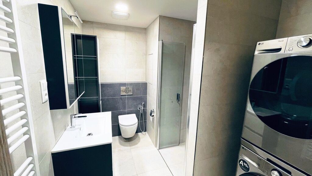 Byt je dokončen ve vysokém standardu, který se vyznačuje kvalitními materiály, nadčasovým designem a důrazem na detail. Součástí vybavení jsou plastová okna s venkovními roletami, bezpečnostní vchodové dveře a nadstandardní obklady a dlažby v koupelně. Prosvětlený obývací pokoj s kuchyňským koutem plynule navazuje na balkon, který poskytuje příjemné místo k odpočinku. Byt působí světlým a vzdušným dojmem, nabízí praktické řešení úložného prostoru a příjemnou atmosféru domova. Dům se právě dokončil a v bytě ještě nikdo nebydlel.