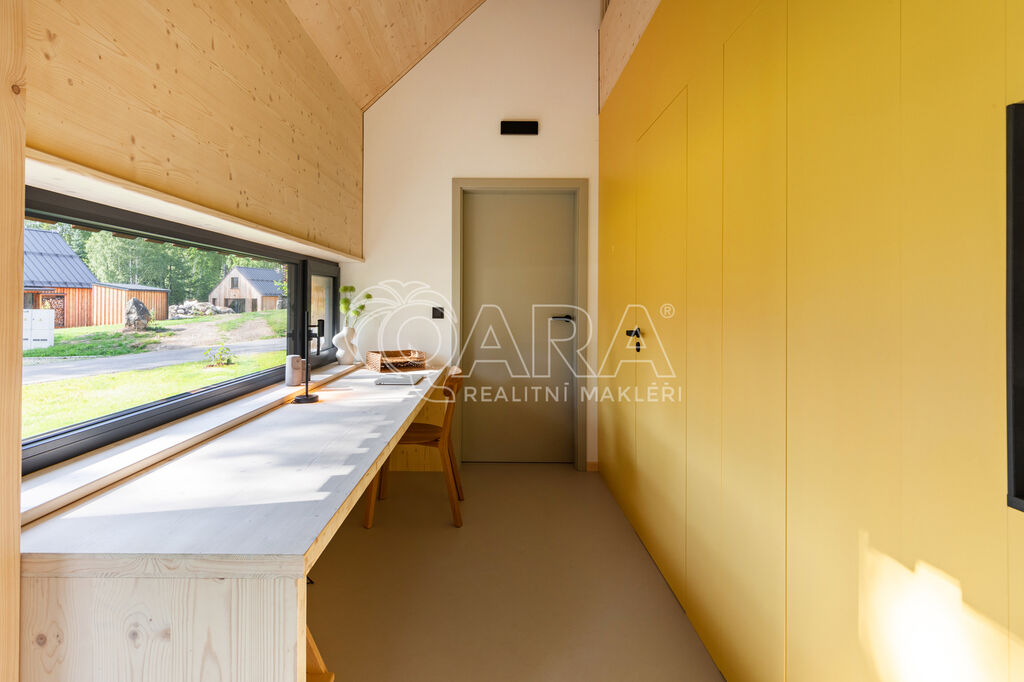 Co se parametrů domu týká, tak jeho celková užitná plocha je 109 m2, dále k němu přísluší téměř 26 m2 velká terasa a přibližně šestimetrový zahradní domek, kde si uskladníte kola, lyže a veškeré potřebné vybavení pro pobyt na horách. Dům pak obklopuje zahrada o výměře 659 m2 a bez problémů zde zaparkujete.