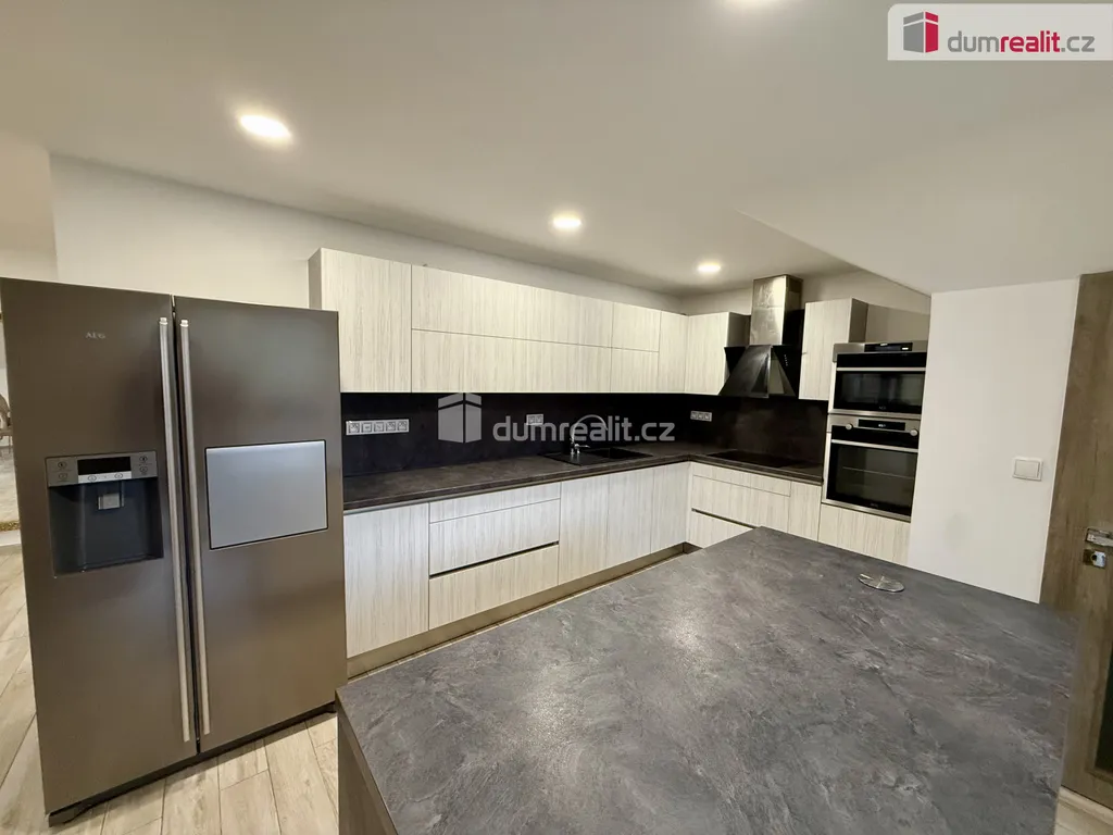 V bytě se nachází kuchyňská linka s varným ostrůvkem se spotřebiči značky AEG (digestoř, sklokeramická deska, vestavěná mikrovlná trouba, horkovzdušná trouba, myčka nádobí). Byt je částečně vybavený s tím, že vybavení je tvořeno krbovými kamny v obývacím pokoji, 2 x vestavěnými skříněmi v ložnici, 1 x vestavěnými skříněmi v obývacím pokoji, 1 x postelí (pokoj), vestavěnými skříněmi v chodbě v 1.NP (u schodiště).