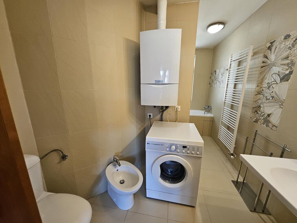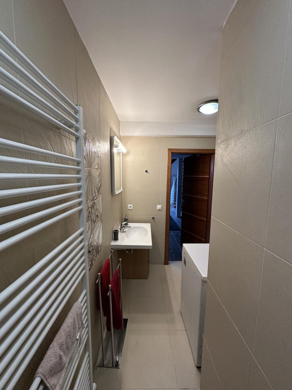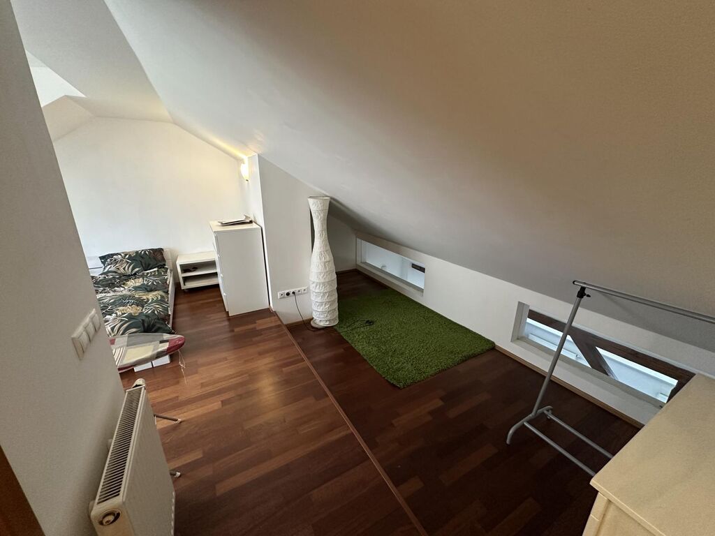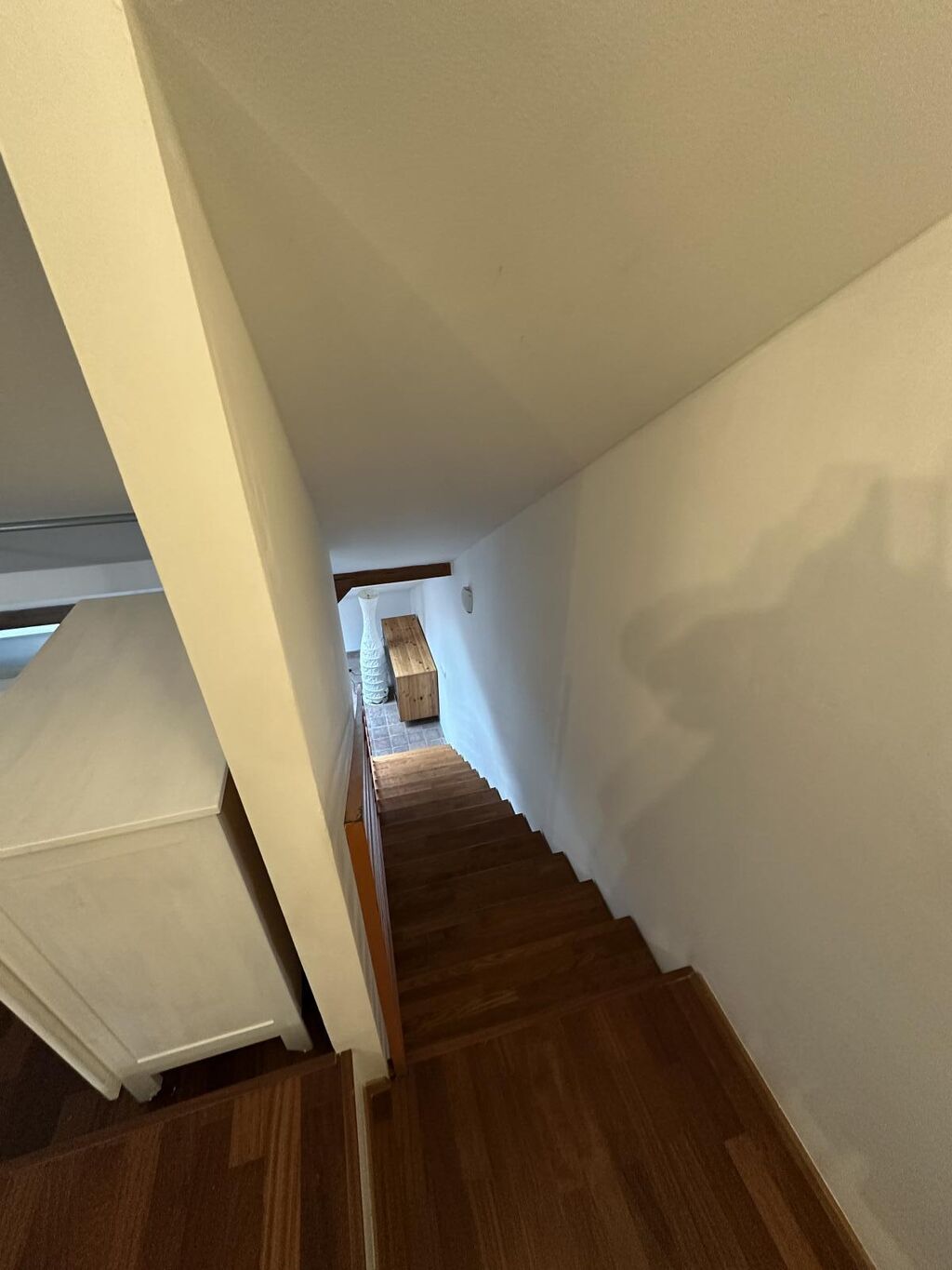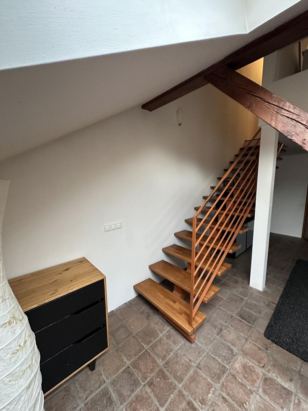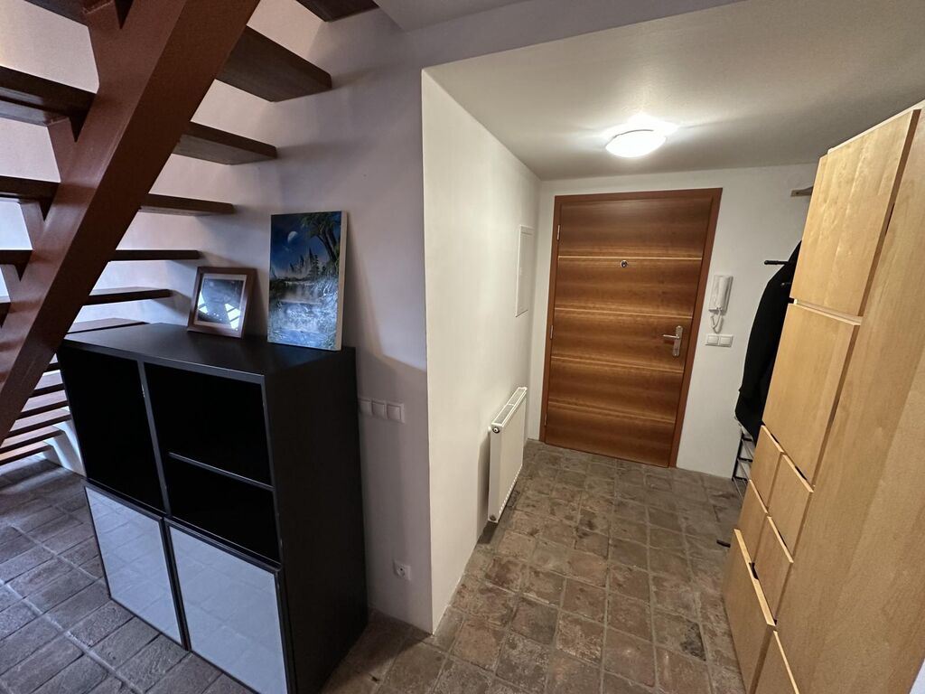 Dispozice: vstupní hala, obývací pokoj s kuchyňským koutem, ložnice a koupelna s bidetem v dolním podlaží; hlavní ložnice, druhá koupelna a terasa v horním podlaží. Byt je zařízen (nábytek včetně základního vybavení; detaily dle dohody).