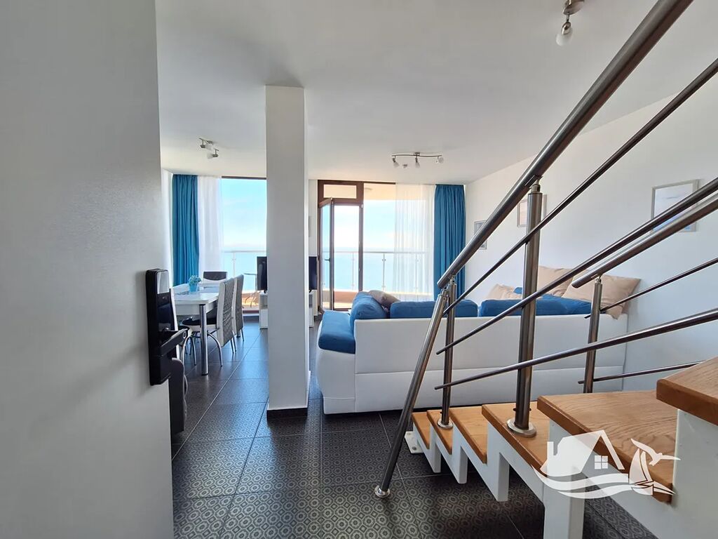 Tento mezonetový apartmán se nachází v 5. a 6. patře a nabízí vše, co si člověk u moře může přát: prostor, světlo a dechberoucí výhledy.