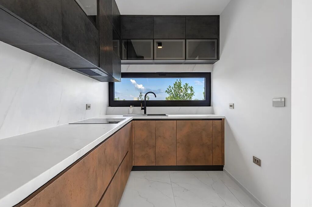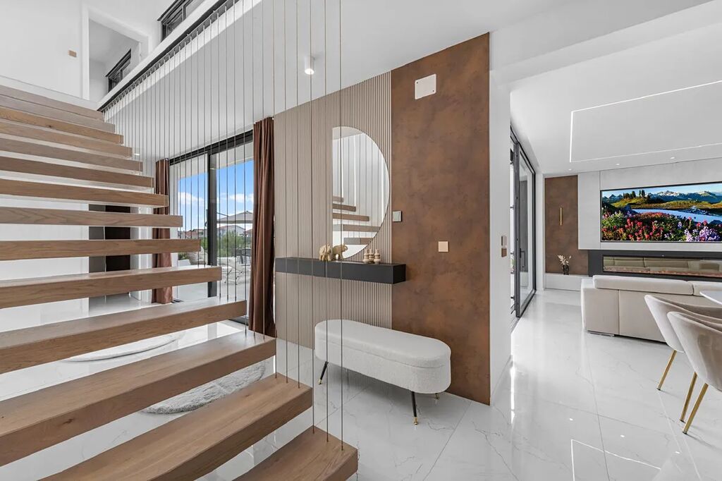 Luxusní nově postavený dům s výhledem na moře, v klidné a atraktivní lokalitě v Tribunji. Je navržená pro maximální komfort bydlení. Dům se rozkládá na dvou podlažích - přízemí + první patro s celkovou užitnou plochou 150 m², s upravenou oplocenou zahradou o rozloze 150 m2. Exteriér doplňuje velká terasa, bazén a dvě parkovací místa. V přízemí se nachází vstupní hala, koupelna, toaleta s prádelnou, jedna ložnice a prostorná kuchyň s jídelnou a obývacím pokojem, ze které je vstup na krásnou terasu a dvůr s bazénem. Tento prostor je navržen jako centrum pro rodinné setkávání a zábavu. V prvním patře se nacházejí dvě ložnice - obě s vlastní koupelnou a velká nekrytá terasa s výhledem na moře. Dům je postaven a vybaven podle vysokých standardů kvality a moderního designu. Nachází se v klidném prostředí a zároveň v ideální vzdálenosti od veškeré občanské vybavenosti: pouhých 600 m od pláže a 650 m od centra města. Dům byl postaven v roce 2025, je kompletně vybaven designovým nábytkem.