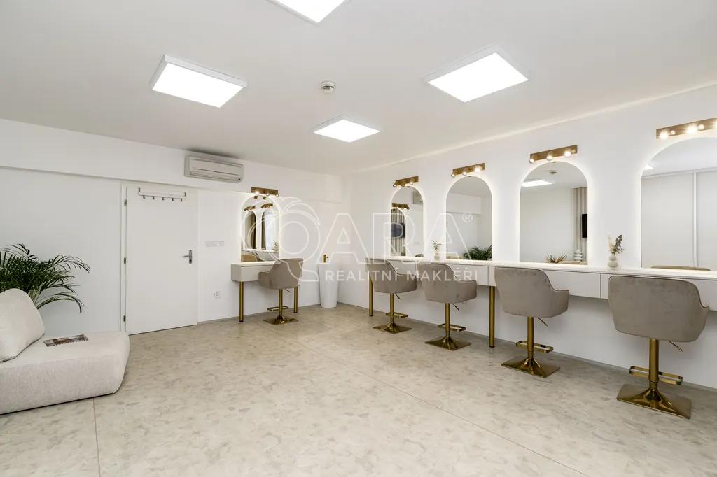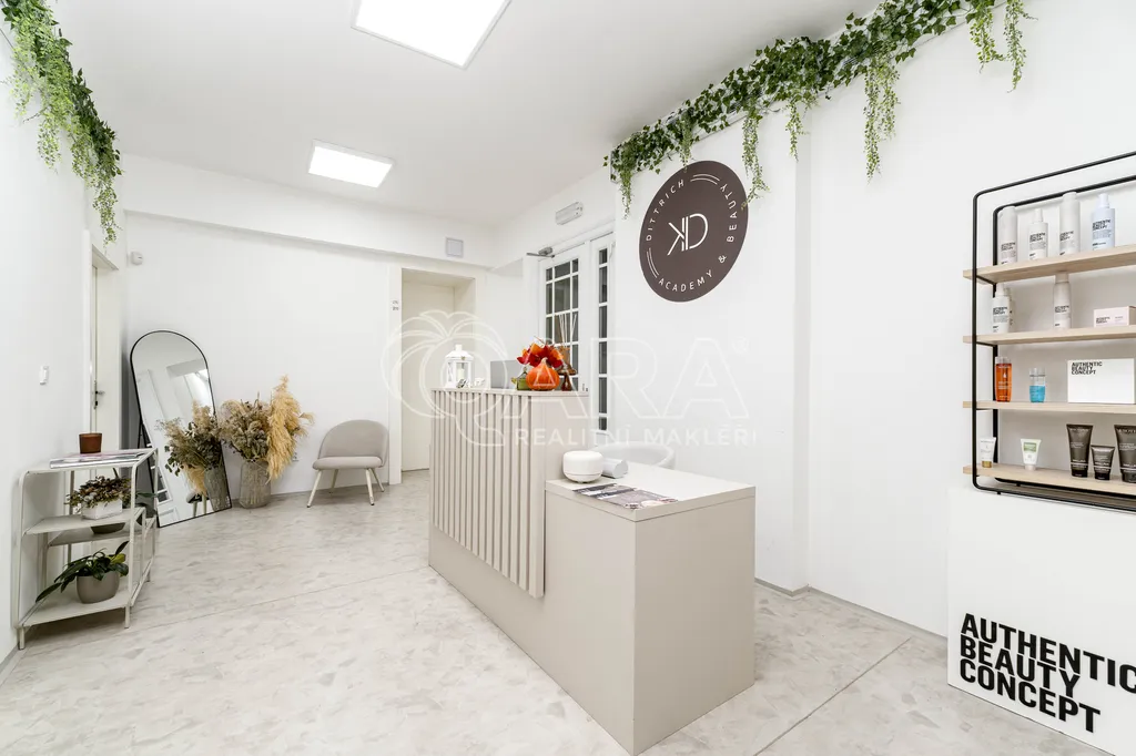 Vybavení: K dispozici je také praktická skříň a komoda pro uložení pracovních pomůcek či textilií, stejně jako záclony a závěsy, které dotvářejí příjemnou a profesionální atmosféru salonu. Křesla a zrdcadla nejsou zahrnuty v ceně, ale je možné jej odkoupit nebo pronajmout. Pokud by vám tento prostor nevyhovoval, na stejném podlaží máme k dispozici také druhý — podívejte se na naši nabídku v inzerci.