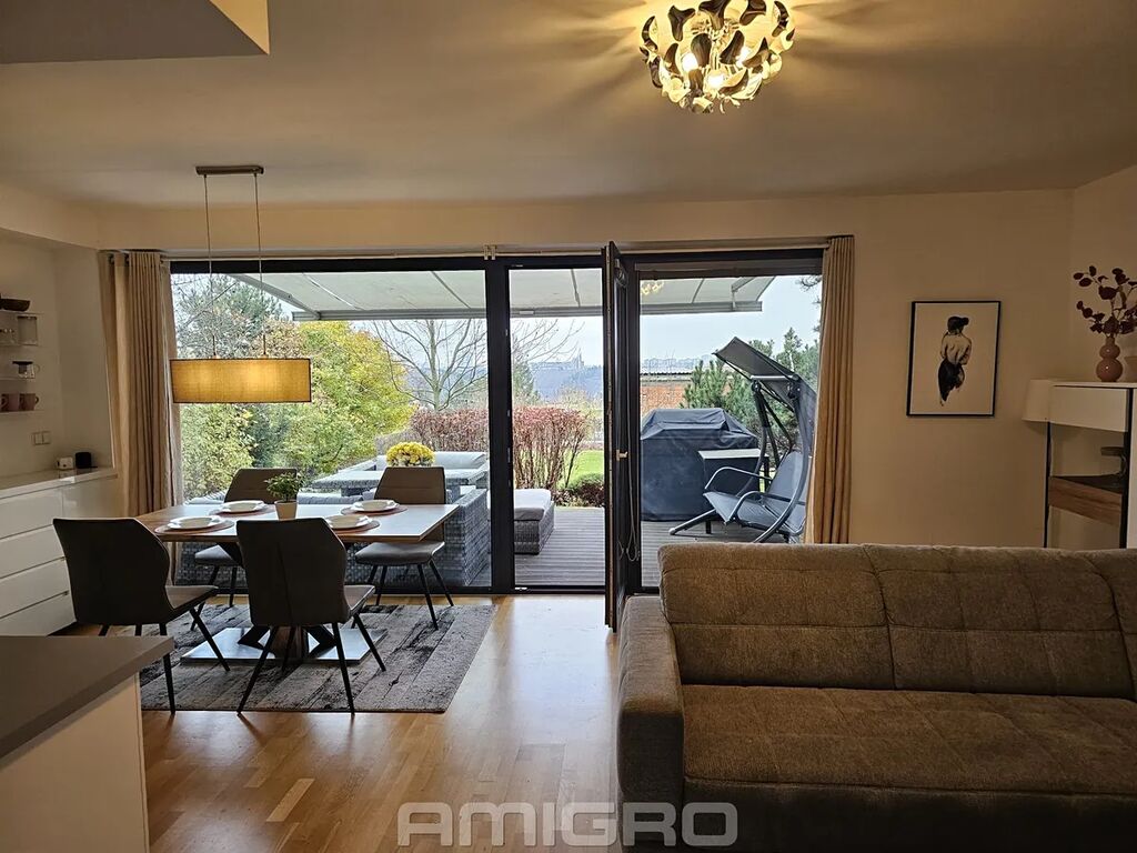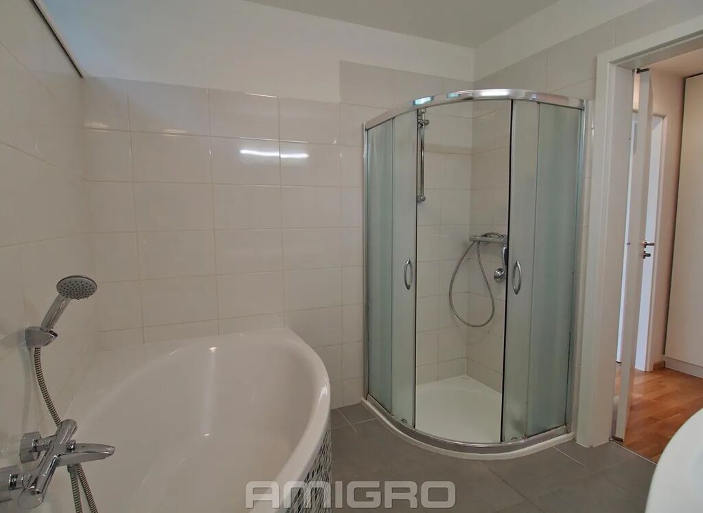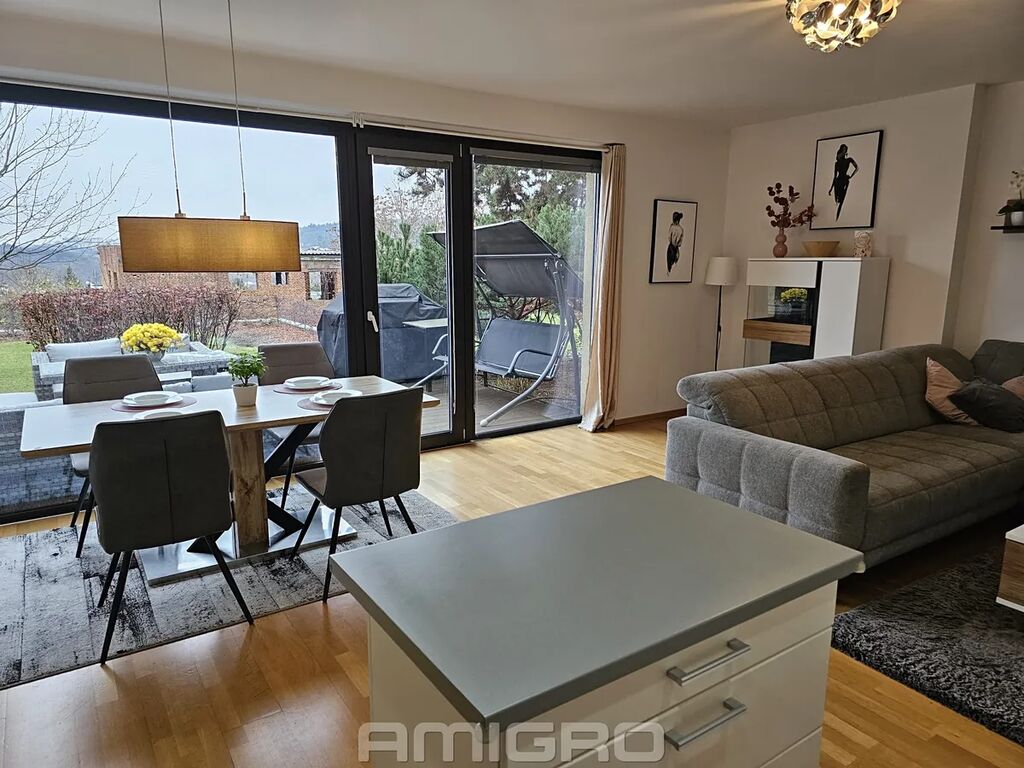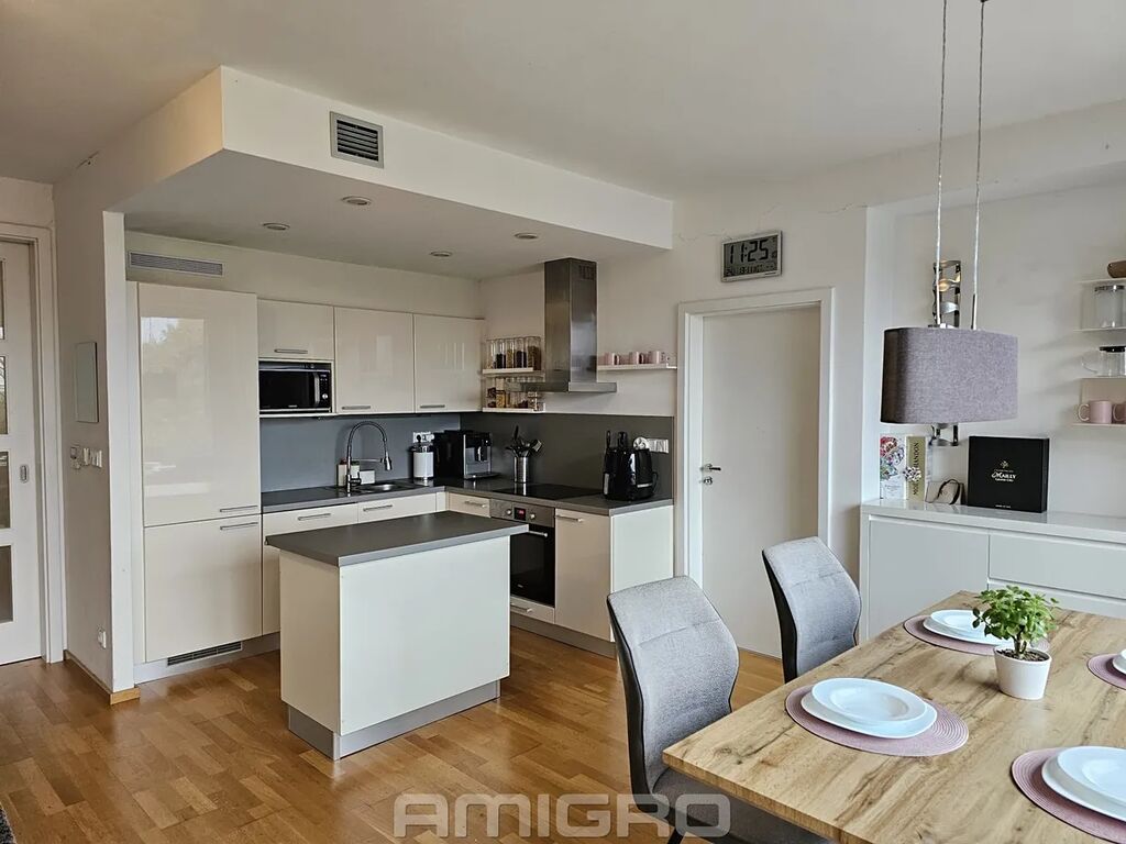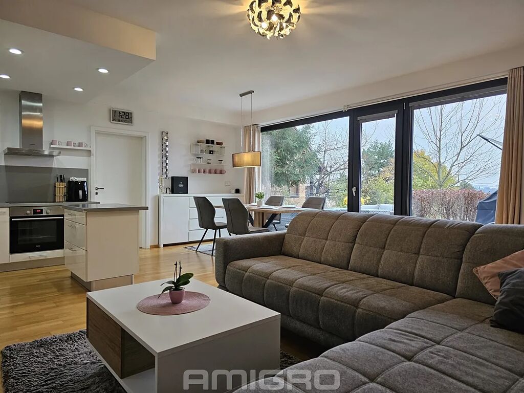 Dispozice: obývací pokoj s kuchyňským koutem a vstupem na terasu, pokoj, ložnice, šatna, koupelna s vanou i sprchovým koutem, samostatné WC (bidet,umyvadlo).