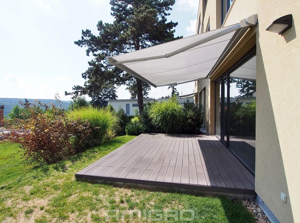 Na oknech jsou venkovní stínící rolety.