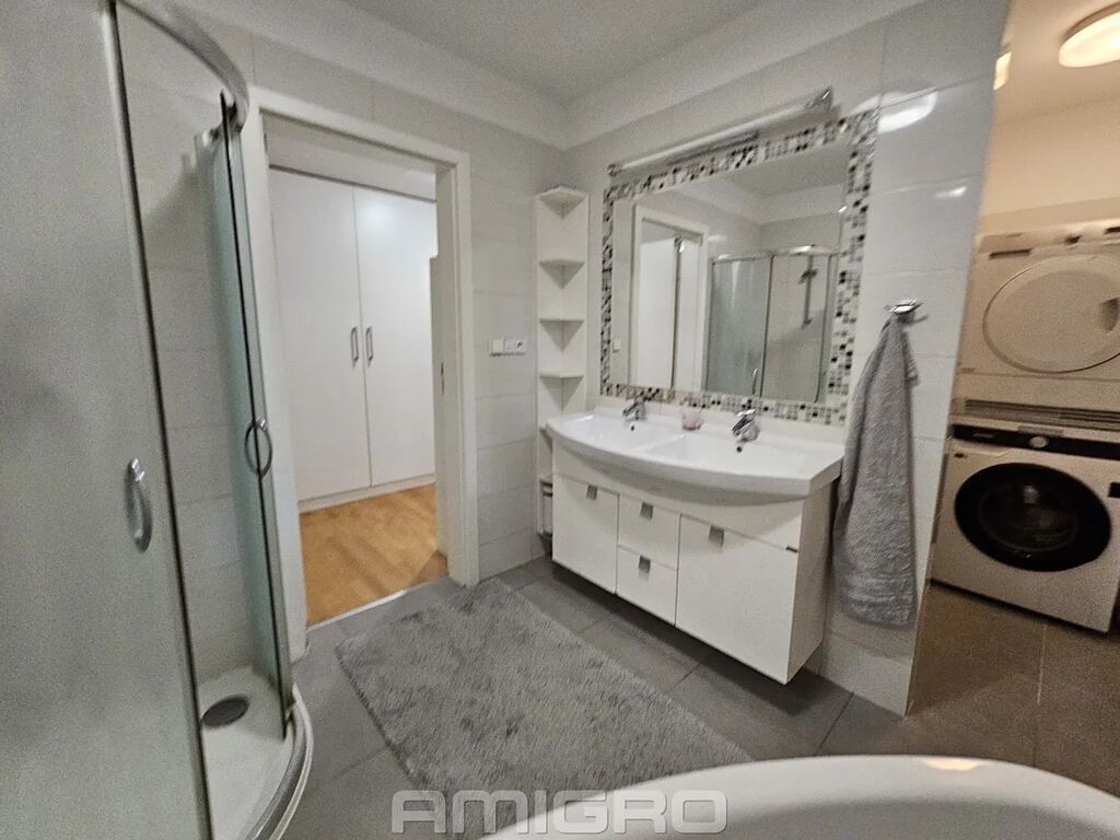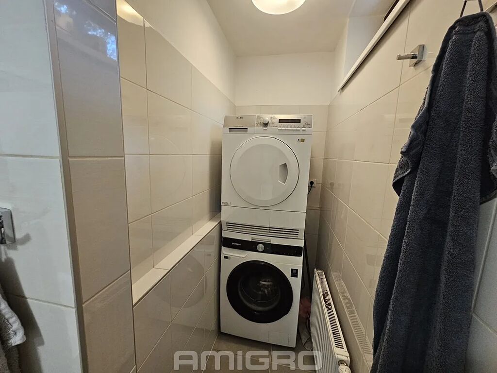 Byt se k pronájmu nabízí zařízený kuchyňskou linkou včetně vest. spotřebičů (lednice, mrazák, sklokeramická varná deska, trouba, myčka nádobí), vest. skříně, šatna s policemi, pračka.