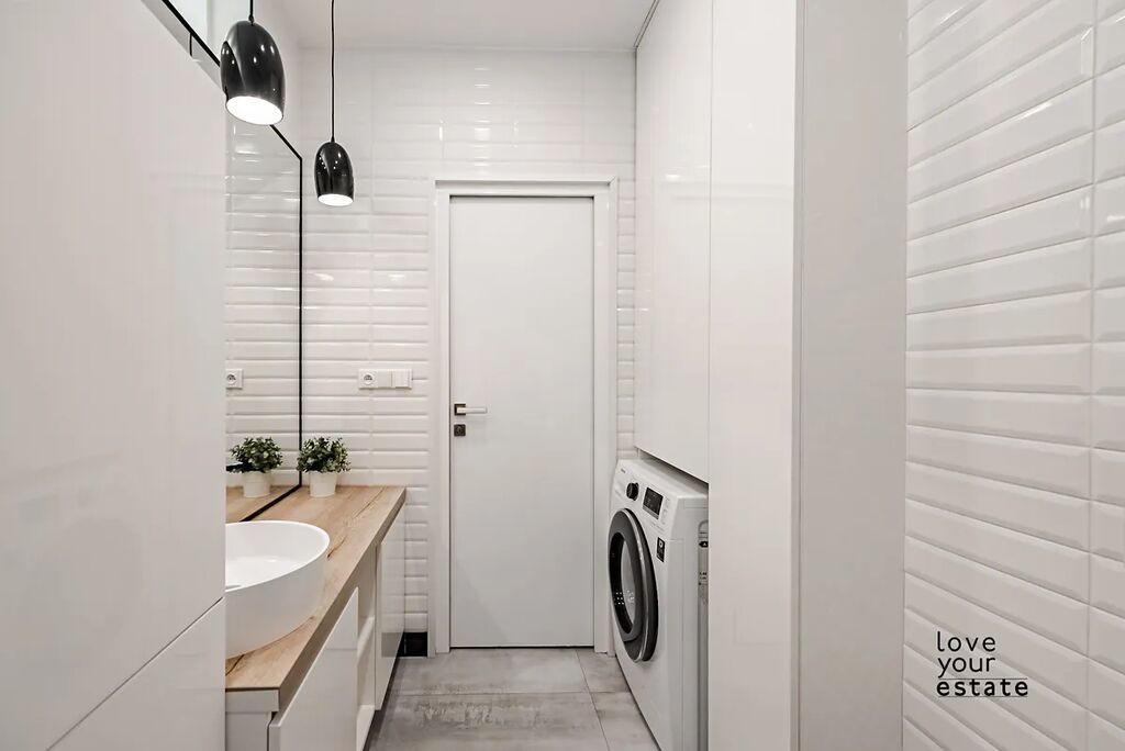 Kuchyňská linka je vybavena lednicí s mrazákem, myčkou, troubou a lednicí na víno. V koupelně pračka se sušičkou.