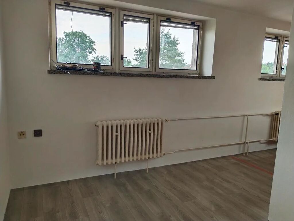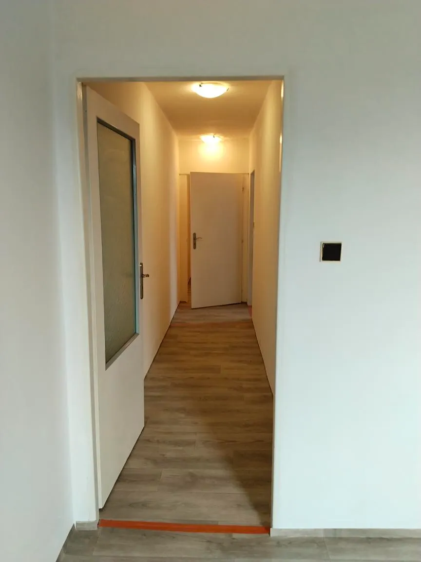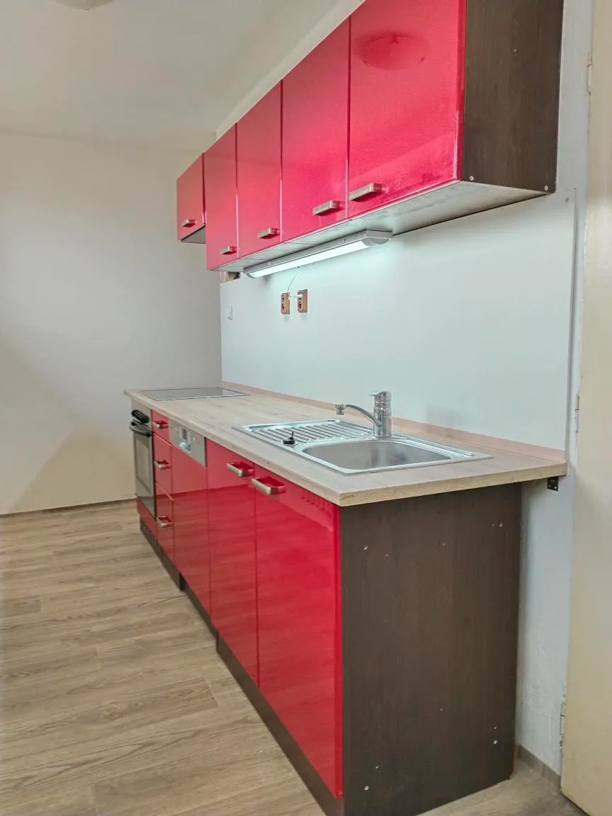 V bytě je nový sprchový kout , umyvadlová skříňka, kuchyňská linka se sporákem a myčkou, přípojka na pračku. Po celém bytě je nově položená podlaha z PVC, nové vchodové dveře, nové WC a k bytu náleží sklep o velikosti 8m².