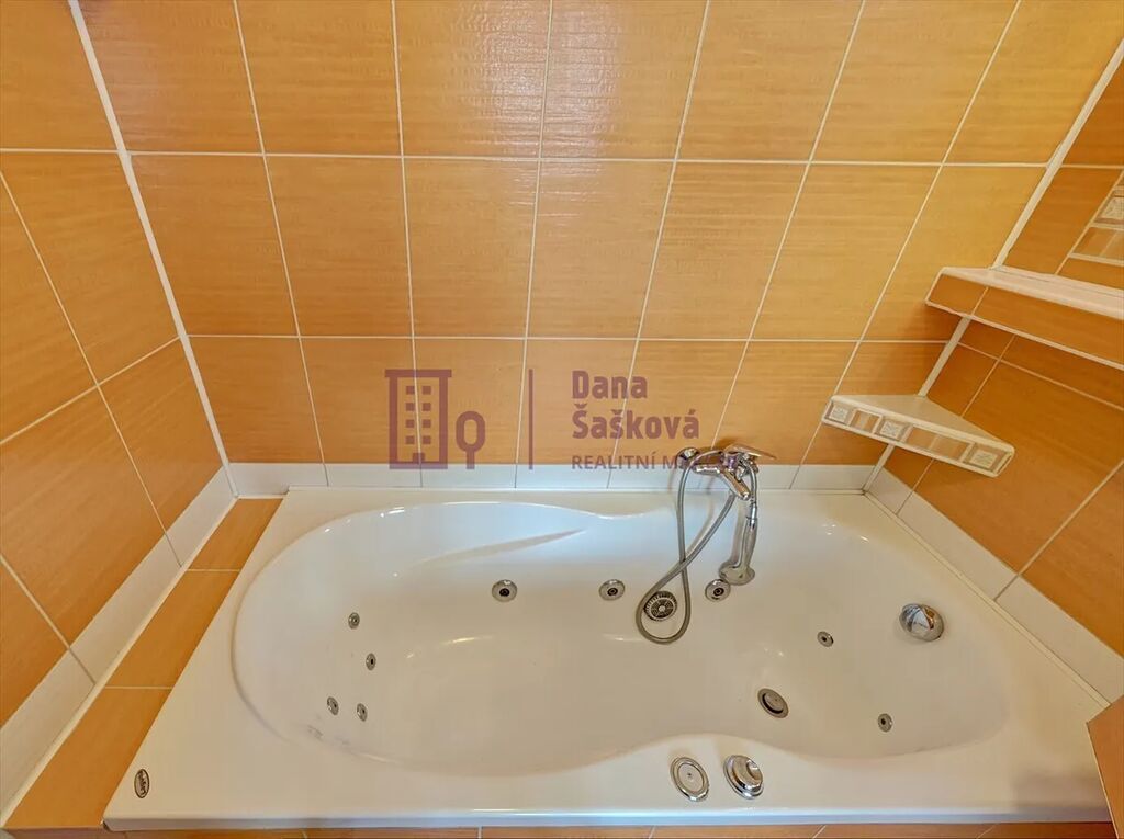 Byt orientovaný na jihovýchod a severozápad je vybavený kuchyňskou linkou, elektrickým sporákem, mikrovlnou troubou a vanou s masážními tryskami.