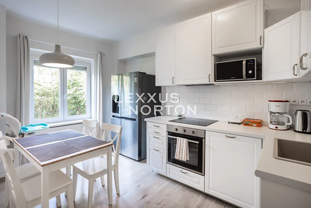 Dispozice bytu zahrnuje prostornou vstupní chodbu, obývací pokoj, plně vybavenou kuchyň, ložnici, koupelnu, samostatnou toaletu a komoru. K bytu náleží sklepní kóje, v domě je možnost využít kočárkárny/kolárny a sušárny.