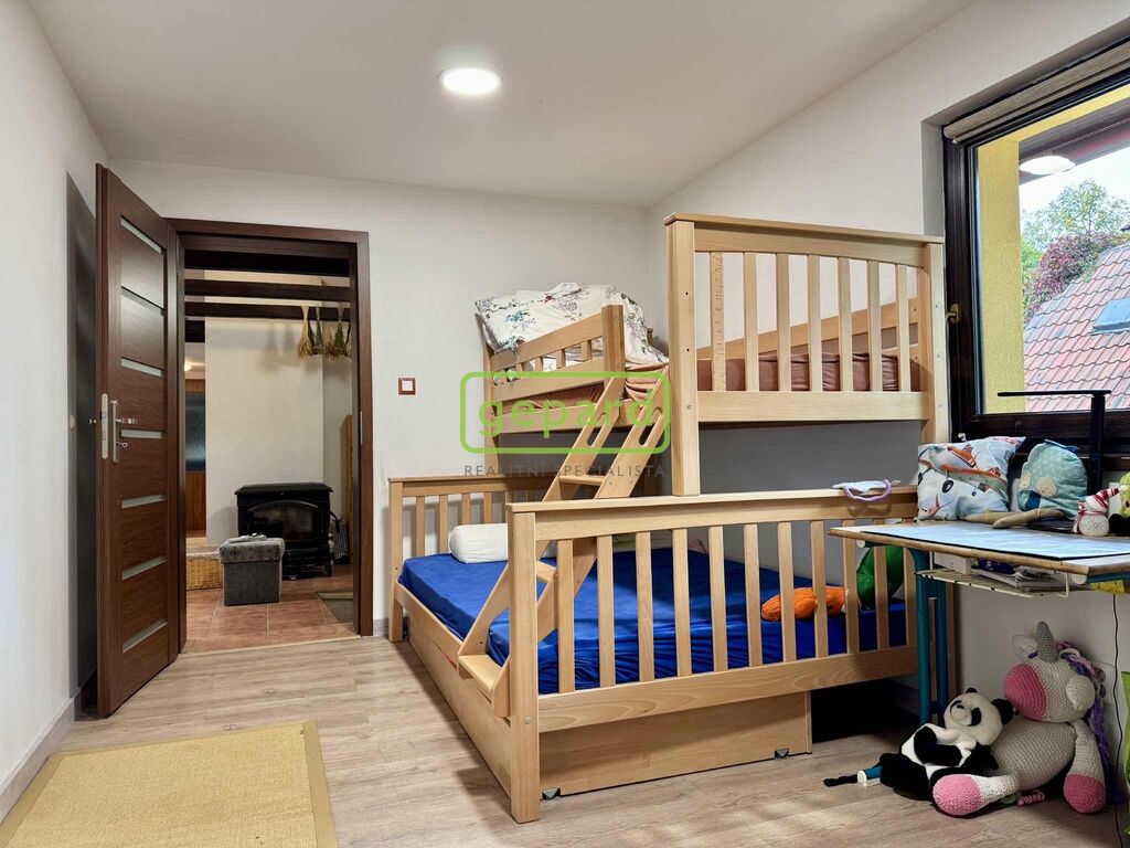 Toužíte-li po klidném bydlení, rádi Vám zprostředkujeme prodej rodinného domu v obci Nivy. Předmětem prodeje je dvoupodlažní dům s obytným podkrovím o obytné ploše 155 m2. Dům prošel kompletní rekonstrukcí a před třemi lety byl stávající dům rozšířen o přístavbu. Dům má dva samostatné vchody a je zde možnost ho využívat jako dvougenerační. V přízemí (74,7 m2) se nachází zádveří, ze kterého je přístup do technické místnosti. Dále se v přízemí nachází kuchyně, dvě místnosti, z níž jedna disponuje vstupem na terasu. Dále je zde koupelna se sprchou a samostatné WC. Z jedné místnosti je vstup do předsíně a z té druhý vstup do domu. Pod předsíní se nachází sklep, který je přístupný schodištěm zvenku. Točitým schodištěm proti vstupu do technické místnosti se dostaneme do druhého nadzemního podlaží domu (80 m2). Zde se nachází ložnice, obývací pokoj s kuchyňským koutem, dva samostatné dětské pokoje a koupelna s WC. V části domu je položeno podlahové vytápění, zbytek je řešen radiátory. Vše je zajištěno tepelným čerpadlem, jako doplňkový zdroj tepla slouží krbová kamna v obývacím pokoji. Pro ohřev teplé vody je v technické místnosti umístěn bojler a dále akumulační nádoba sloužící k ohřevu vody pro vytápění. Dům je zateplen a má novou fasádu. Elektřina je v mědi, rozvody vody v plastu. Přípojka plynu ani kanalizace zde není. Užitková a pitná voda je řešena studnou a 300 l zásobníkem na pitnou vodu. Zahrada nabízí místo odpočinku s krásným výhledem do přírody na okolní lesy. Parkování je možné jak přímo u domu, tak před domem. Dojezdová vzdálenost do okolních obcí, jak Nové Role, tak Karlových Varů je velice dobrá. Prohlídku domu Vám rádi zprostředkujeme, s financováním dokážeme pomoci. Více informací u makléře.