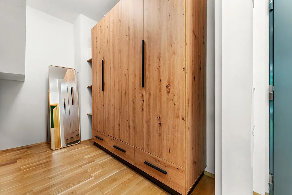 Součástí přízemí je také šatna s vestavěnou skříní a dalším úložným prostorem.