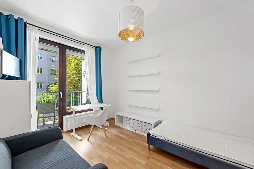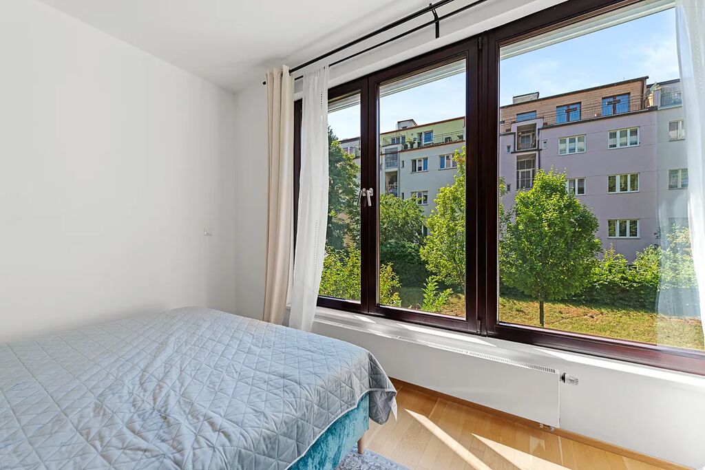 Nabízíme k pronájmu moderní a světlý byt o dispozici 3+kk a podlahové ploše 119 m² v prestižní Rezidenci Korunní. K bytu náleží balkon o velikosti 4 m² a předzahrádka o rozloze 44 m².