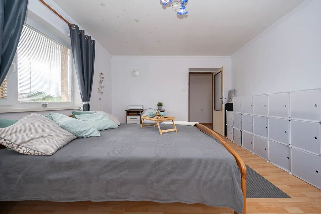 Nabízíme k pronájmu část rodinného domu se zahradou a technickým zázemím. Jedná se o samostatnou bytovou jednotku s dispozicí 4+1 o velikosti téměř 100 m² v druhém nadzemním podlaží. Byt disponuje dvěmi dětskými pokoji, ložnicí, obývacím pokojem, kuchyní, koupelnou a samostatným záchodem. Z bytu je krásný výhled do přírody.