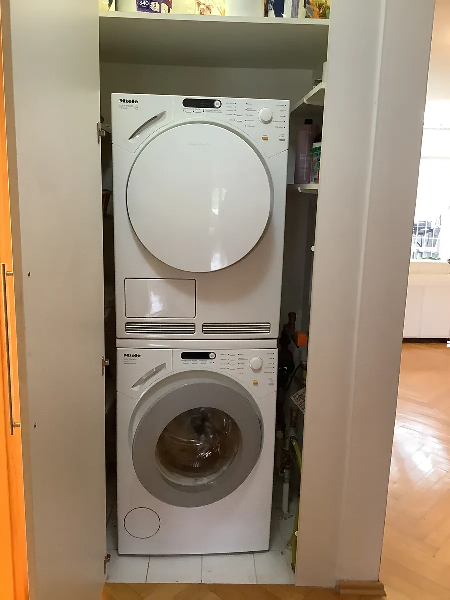 Součástí prodeje je plně vybavená kuchyňská linka se zabudovanými spotřebiči, vestavěné skříně a další nábytek.