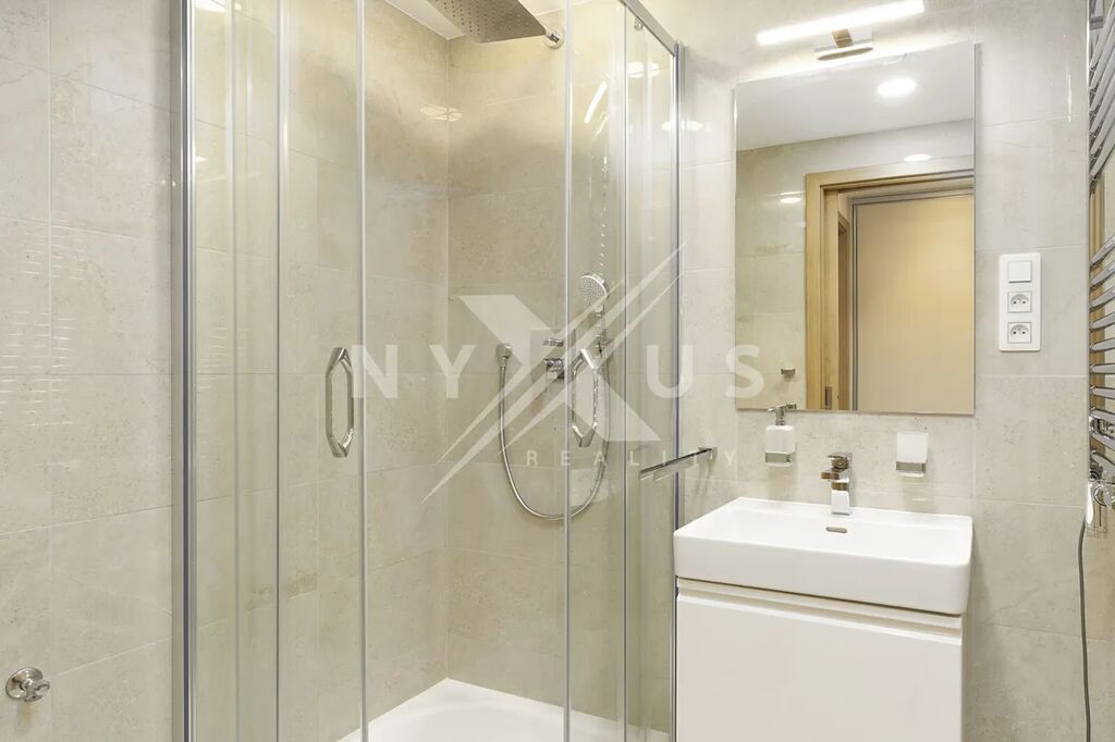 Byt má klimatizaci, bezpečnostní systém, kamerový systém ke vstupním dveřím, před okenní žaluzie, podlahové vytápění, vestavná skříň v chodbě, cirkulace vzduchu, bezpečnostní vložka. garnýže, dotyková led světla v kuchyni.