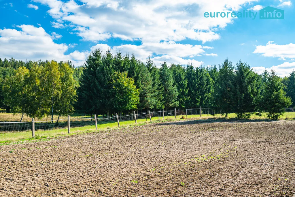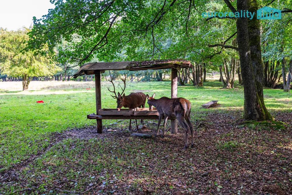 * Zabezpečení: Obora je kompletně oplocena robustním, originálním oborovým pletivem (výška 205 cm) ukotveným na betonových sloupech.