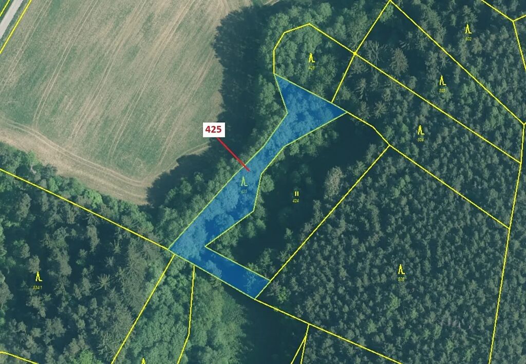 Lesní pozemek o výměře 1719 m2, parcelní číslo 425, podíl 1/1, katastrální území Kuřimany, obec Kuřimany, obec s rozšířenou působností Strakonice, okres Strakonice, Jihočeský kraj.